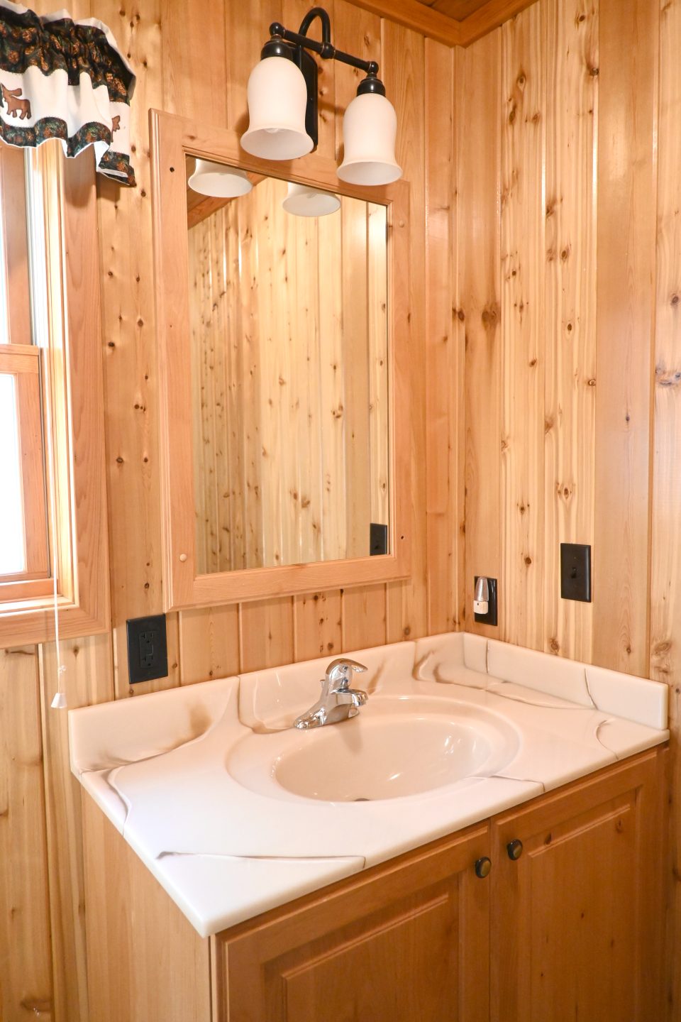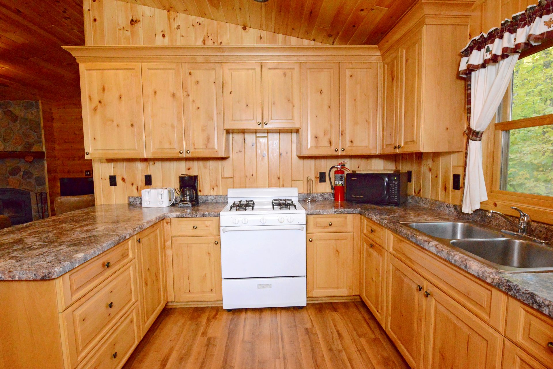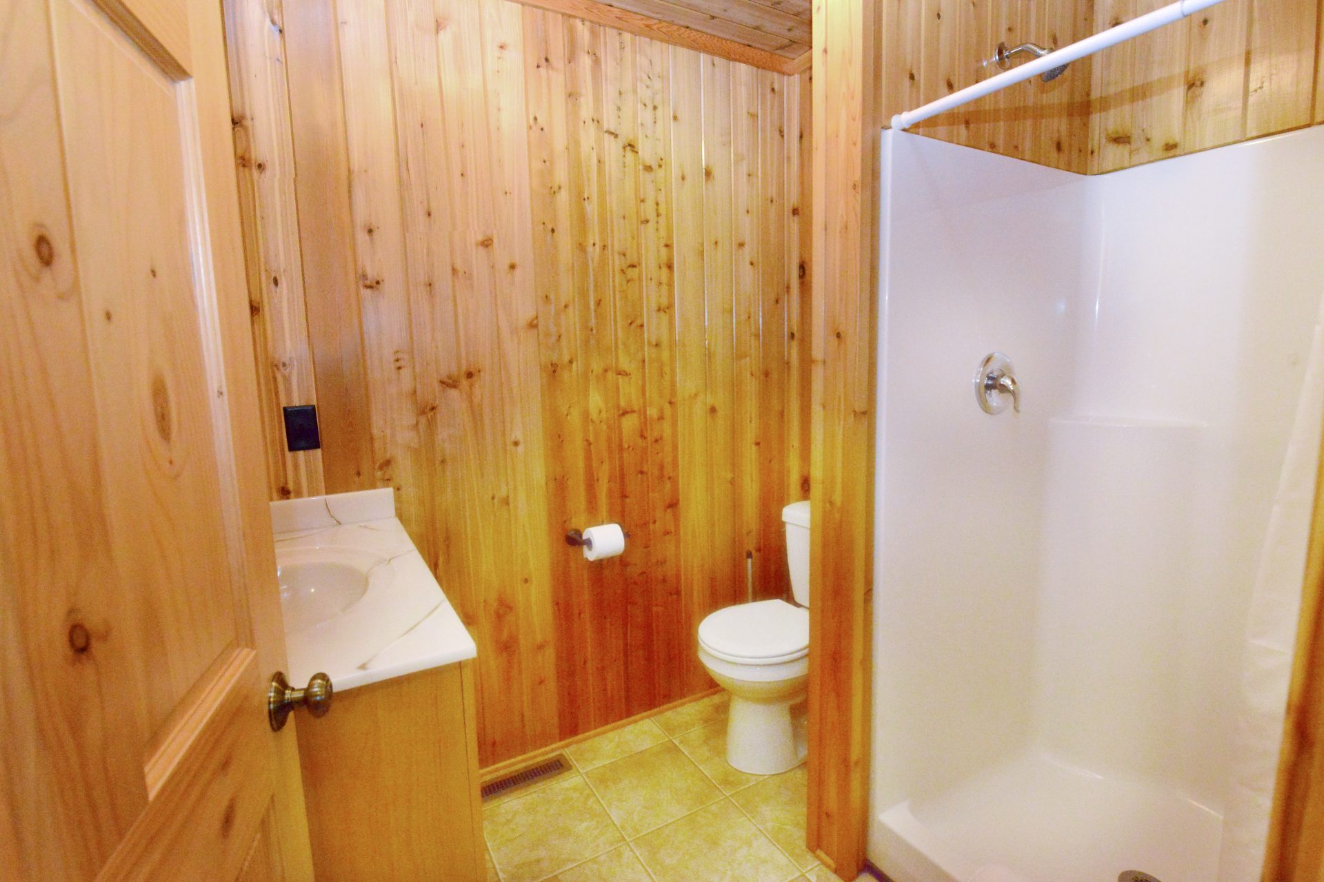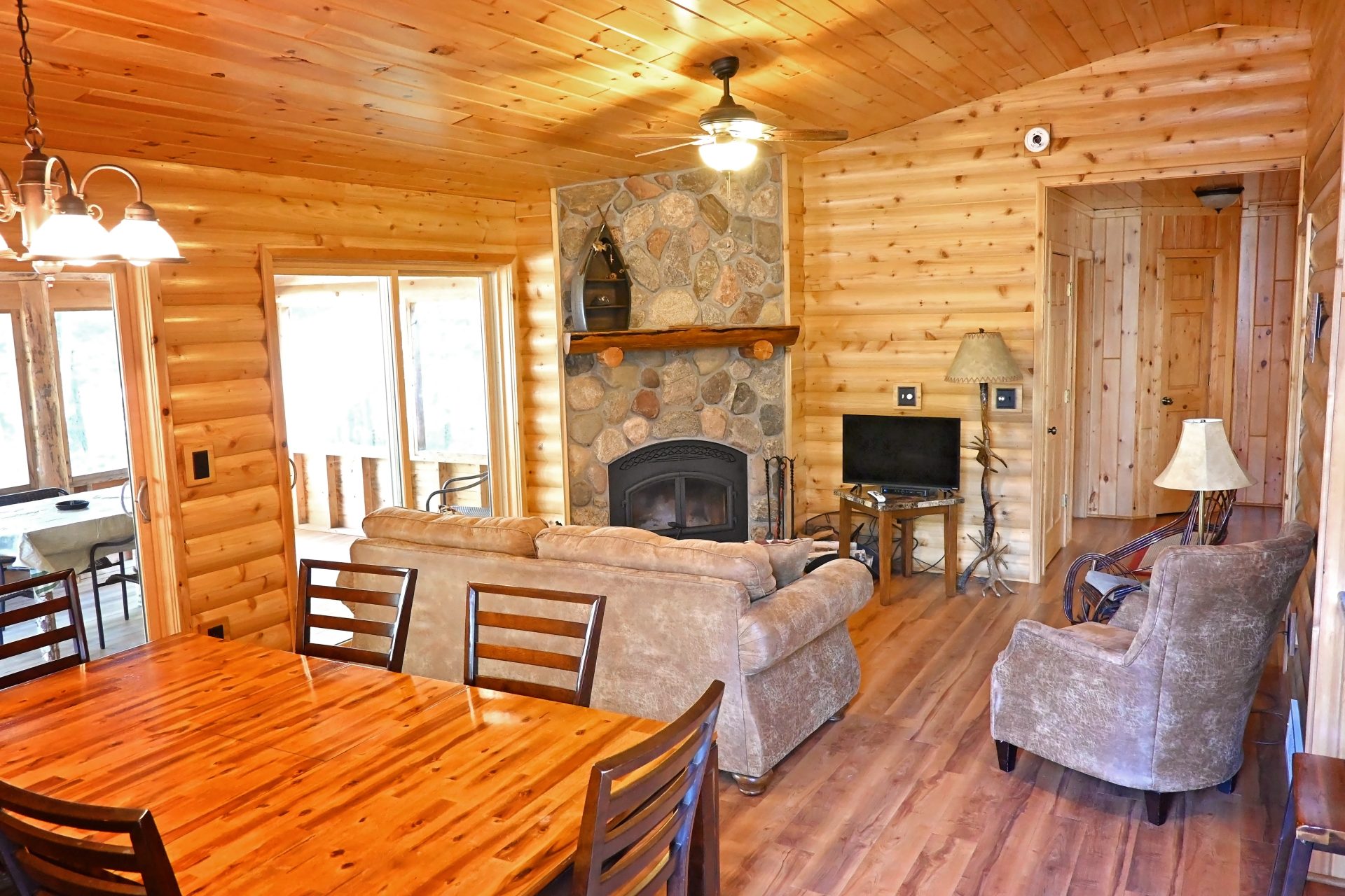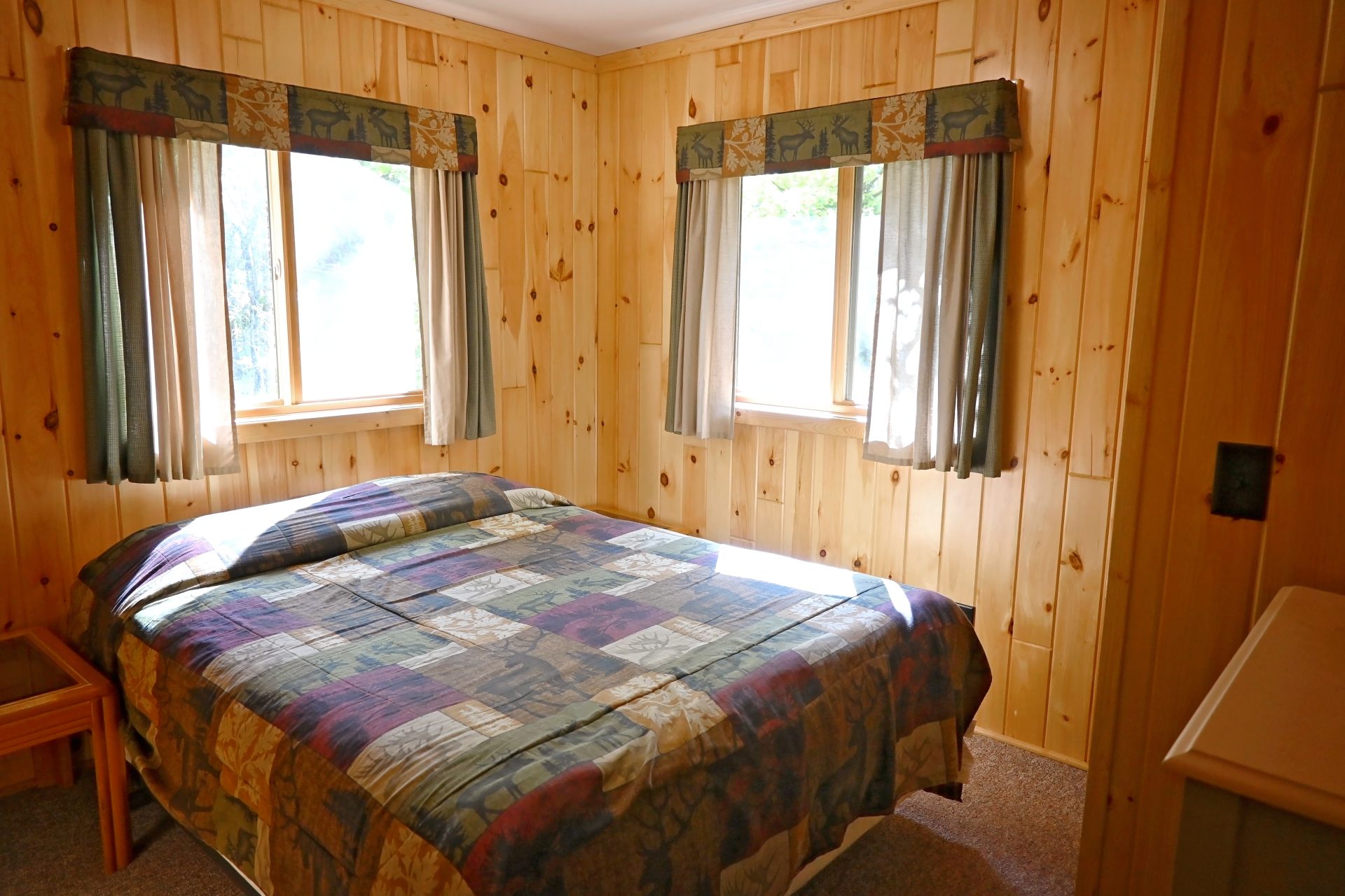 Enjoy this newly built cabin accented with cedar log walls, a stone fireplace, cathedral ceilings and double patio doors framing a serene view of Lost Land Lake (one of the Quiet Lakes). Cedar is equipped with a large screened-in porch just 75′ from the water’s edge providing easy access to your private dock. Central heating and air will keep this treasure at the perfect temperature for spring, summer and fall. Our first pet-free cabin offers three spacious bedrooms, two baths and a cozy kitchen. A centrally located snack bar adjacent to a large dining and living room area, keeps the family together in one communal area. The location of this delightful gem offers a perfect balance of interaction and relaxation.