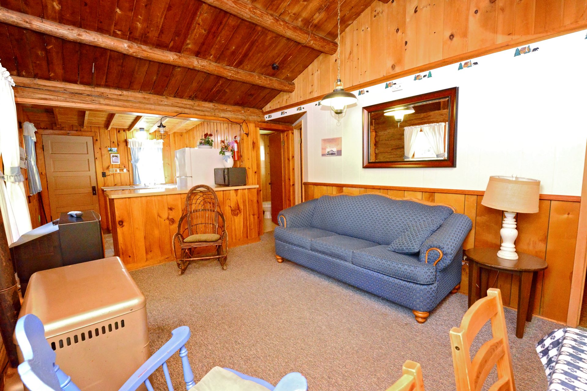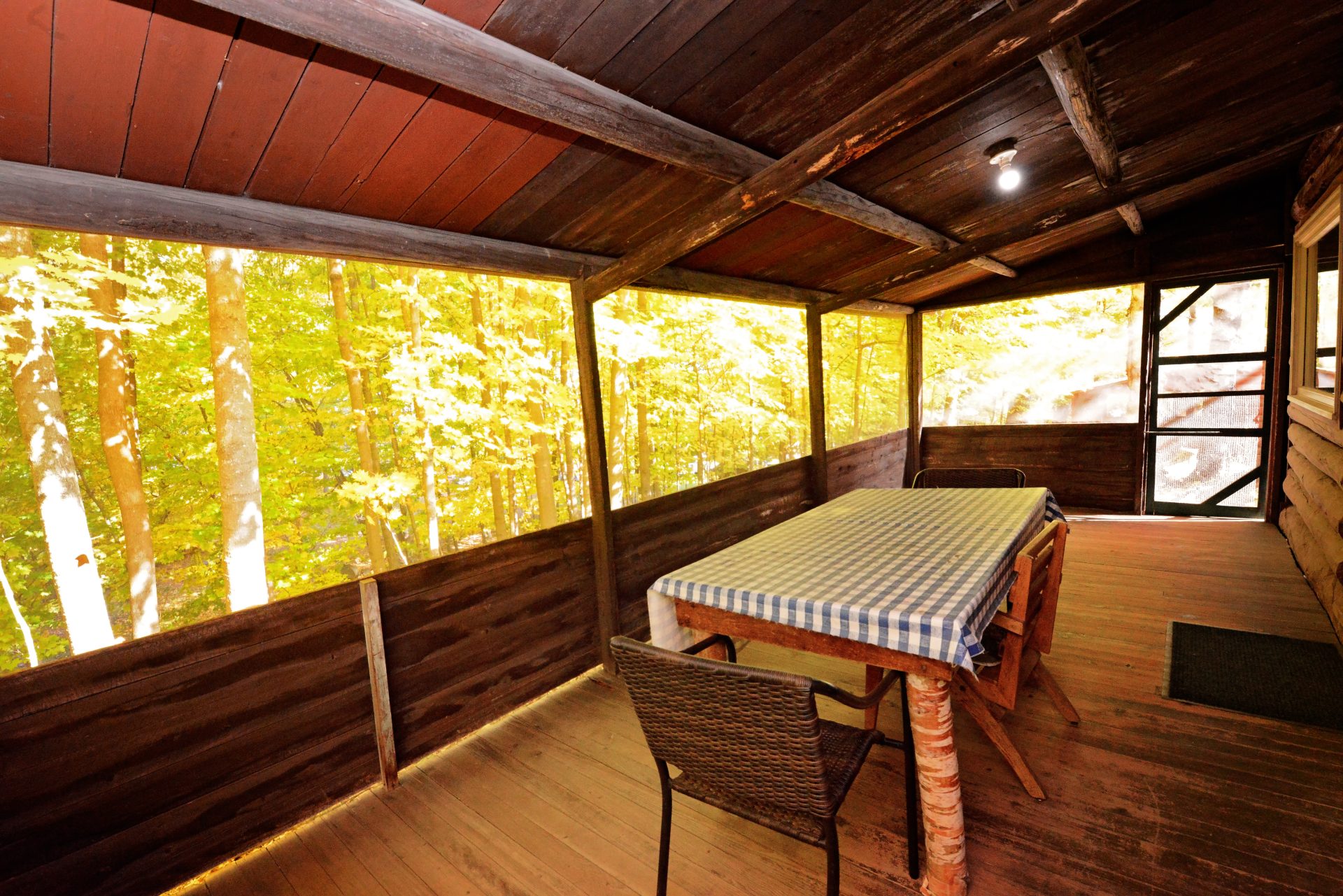 This country log cabin with cathedral ceilings takes you back in time to grandma’s cabin graced with antiques. Enjoy countless hours of nature from your private and spacious screened-in porch. Just 175’ from fun at the beach and game room ensures a nice balance of quietude and interaction.