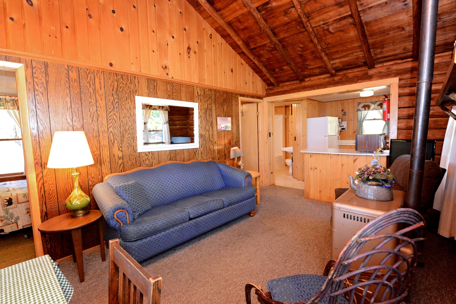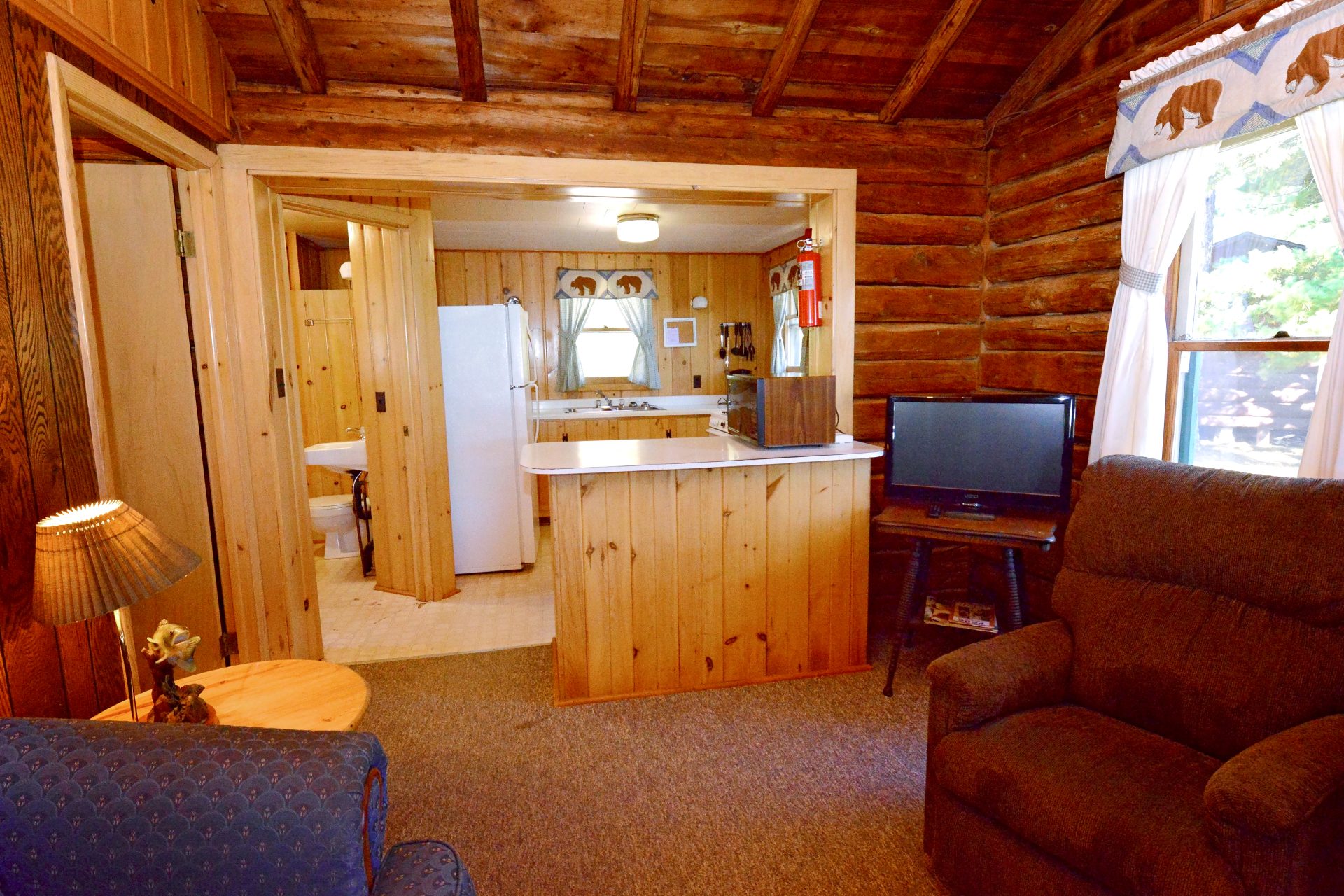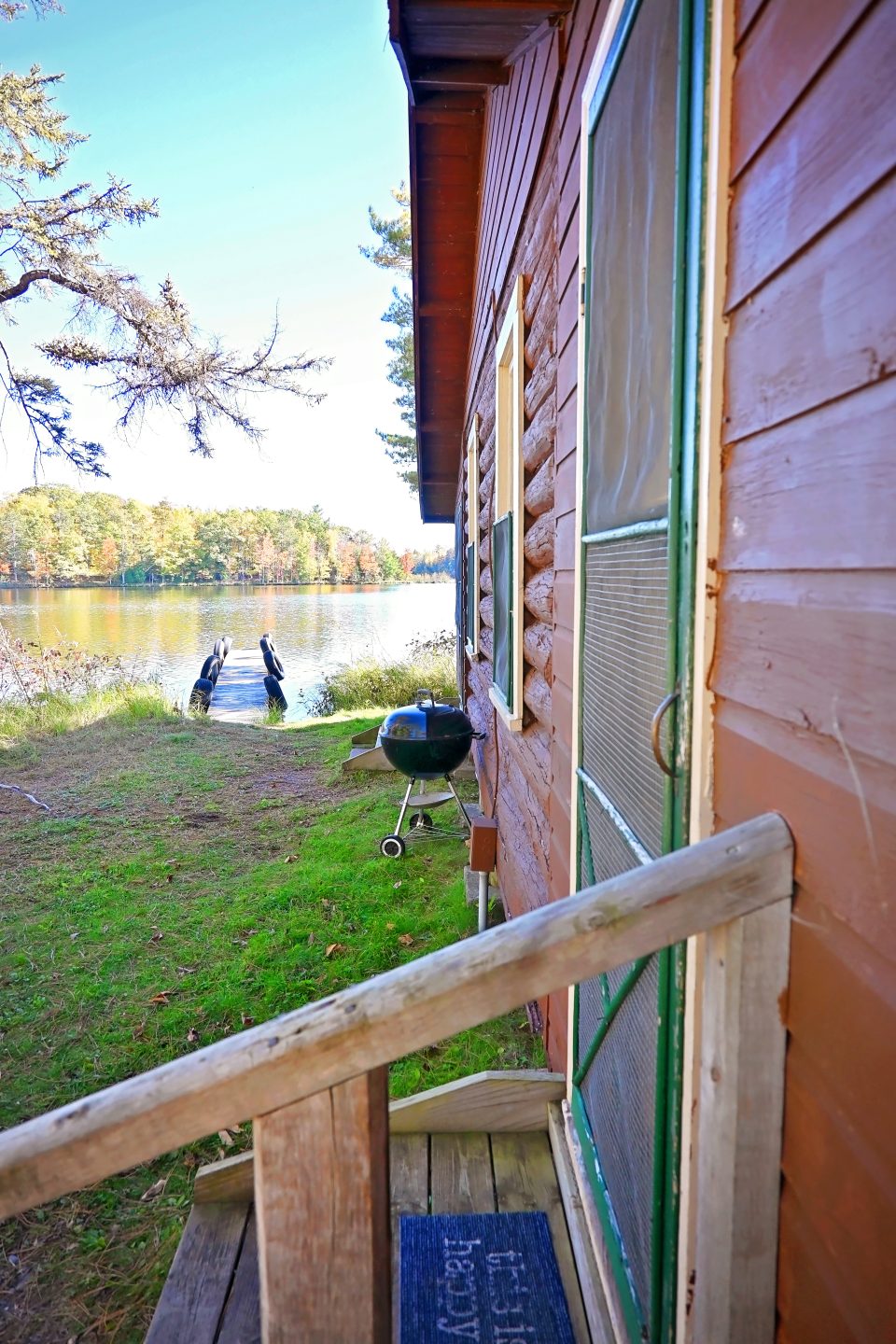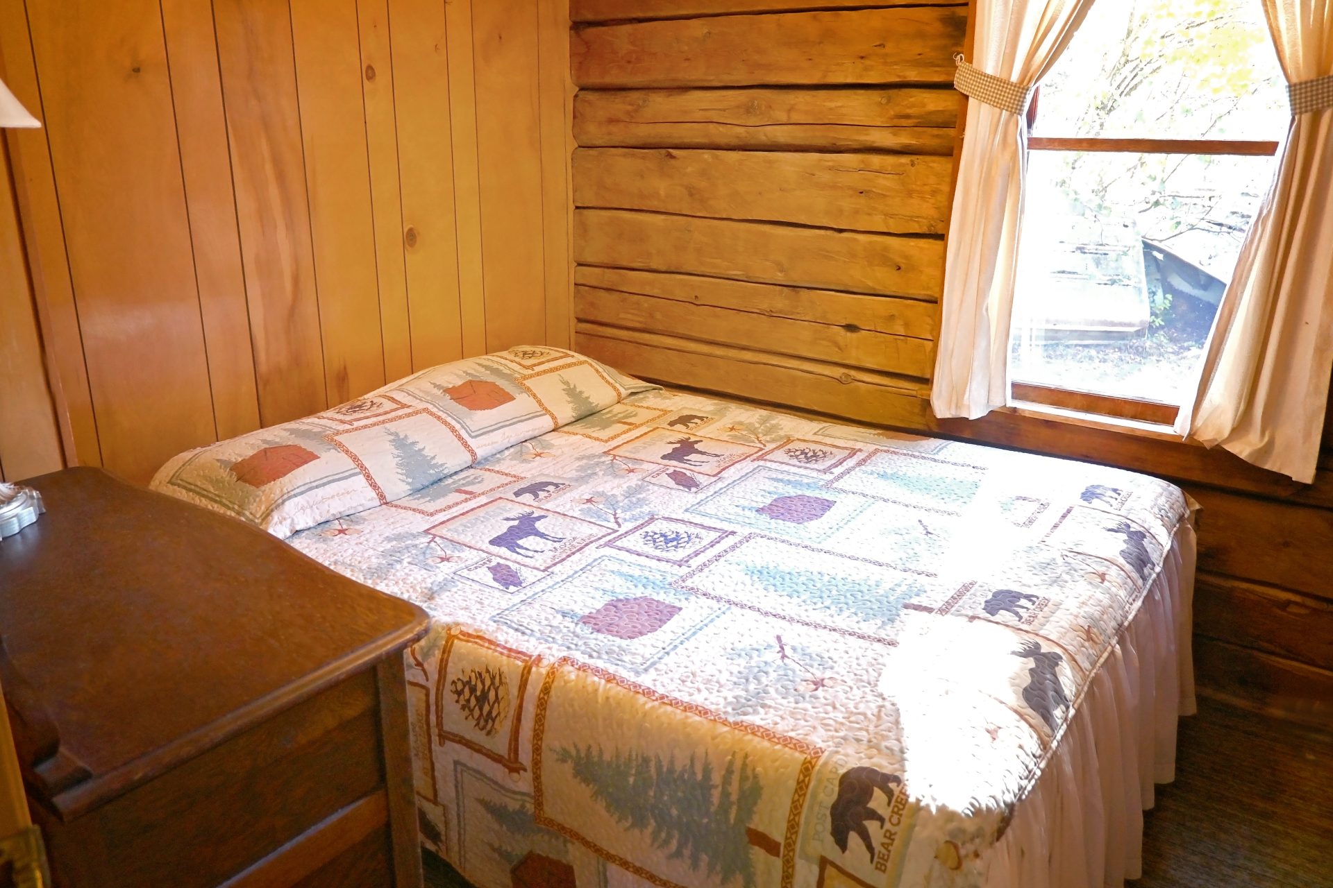 Blessed with grandma’s antiques, cathedral ceilings and a picturesque lake view, this is one our most coveted cabins. Located in our bay, Killdeer signifies an undisturbed vacation with only 10 level feet from water’s edge. Enjoy a front row seat from 2 sides to nature’s water theatre from your spacious screened-in porch or simply enjoy the peace and tranquility of this beautiful up north log cabin.