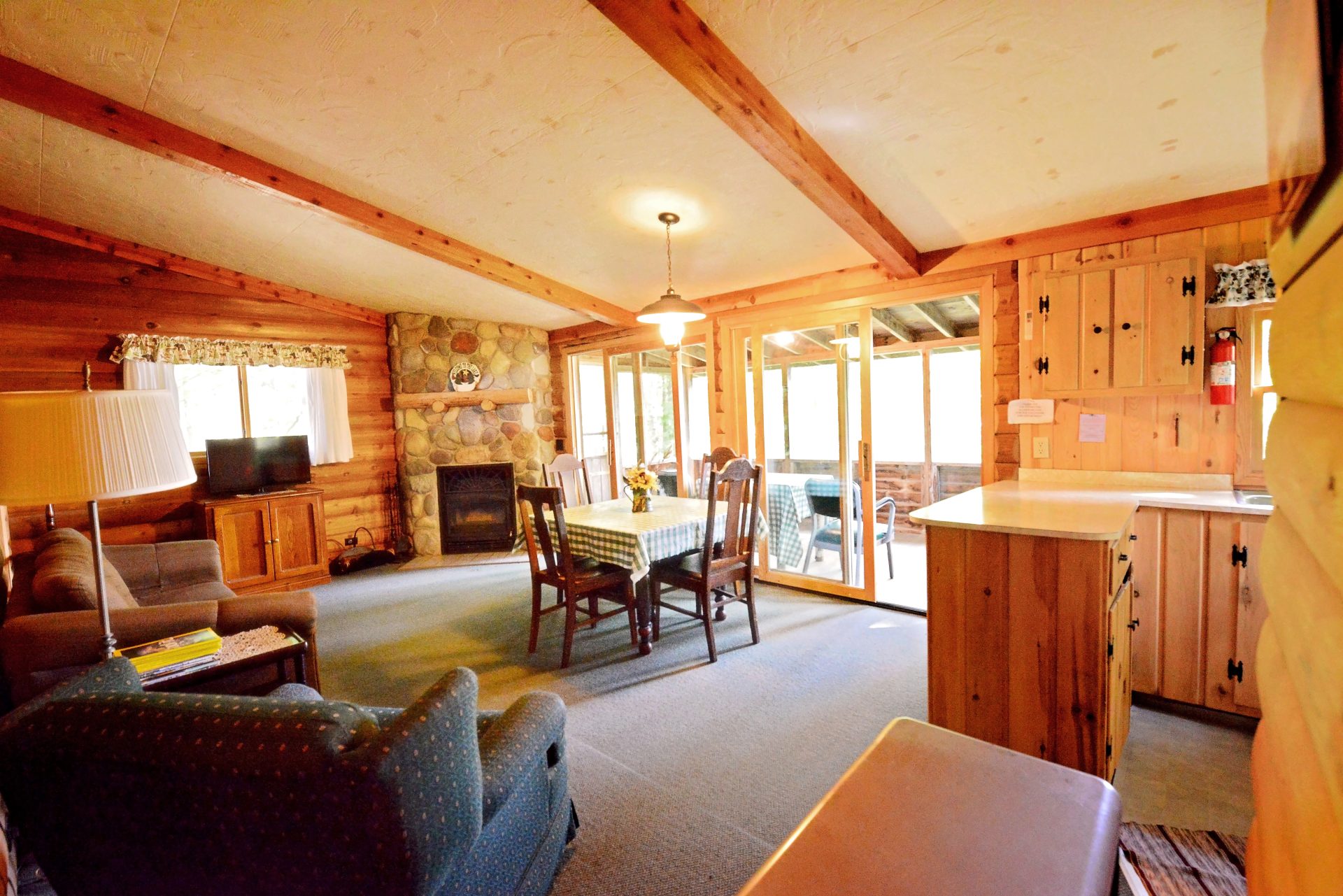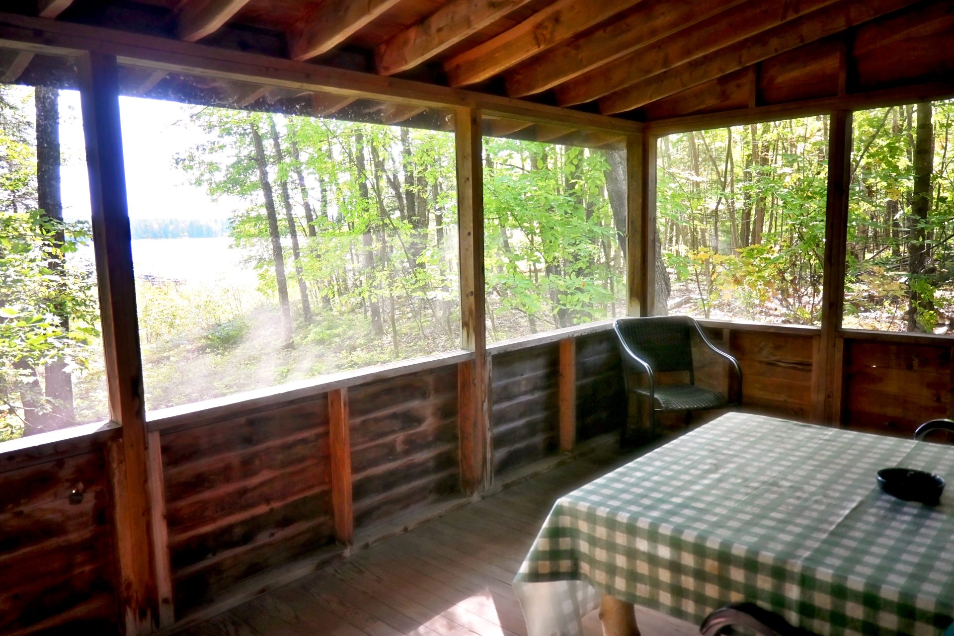 Cherish this breathtaking, private lake view with double patio doors and spacious screened-in porch. Only 150’ from the water suggests a perfect balance of interaction and solitude. Relish in the heartwarming glow from a crackling stone fireplace, enjoy animals frolicking just outside your cabin, or explore a private nature trail starting at your doorstep. Up north décor makes this log sided cabin romantic and inviting with double sink vanity and vaulted ceiling in a spacious living room and kitchen. Stay cool or warm in every season with central air. You won’t want to miss the magic this cabin offers.