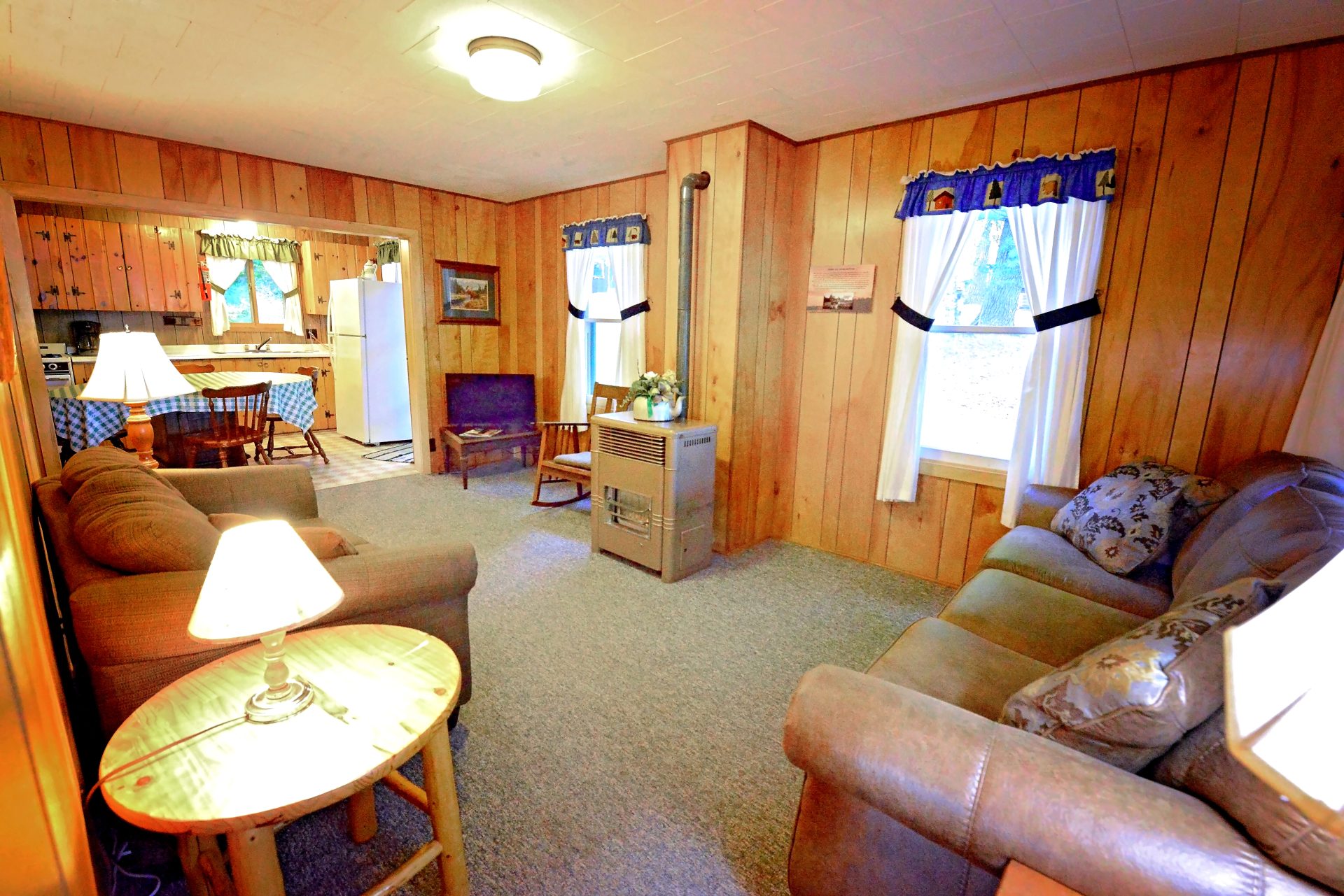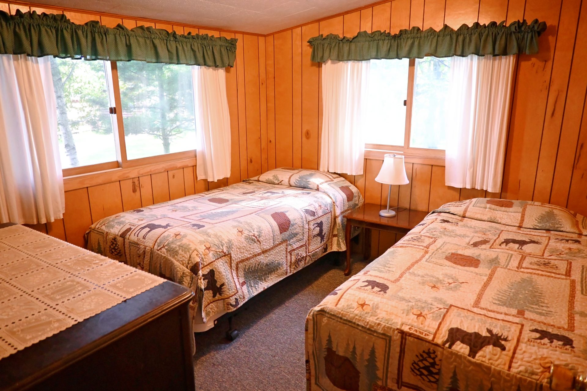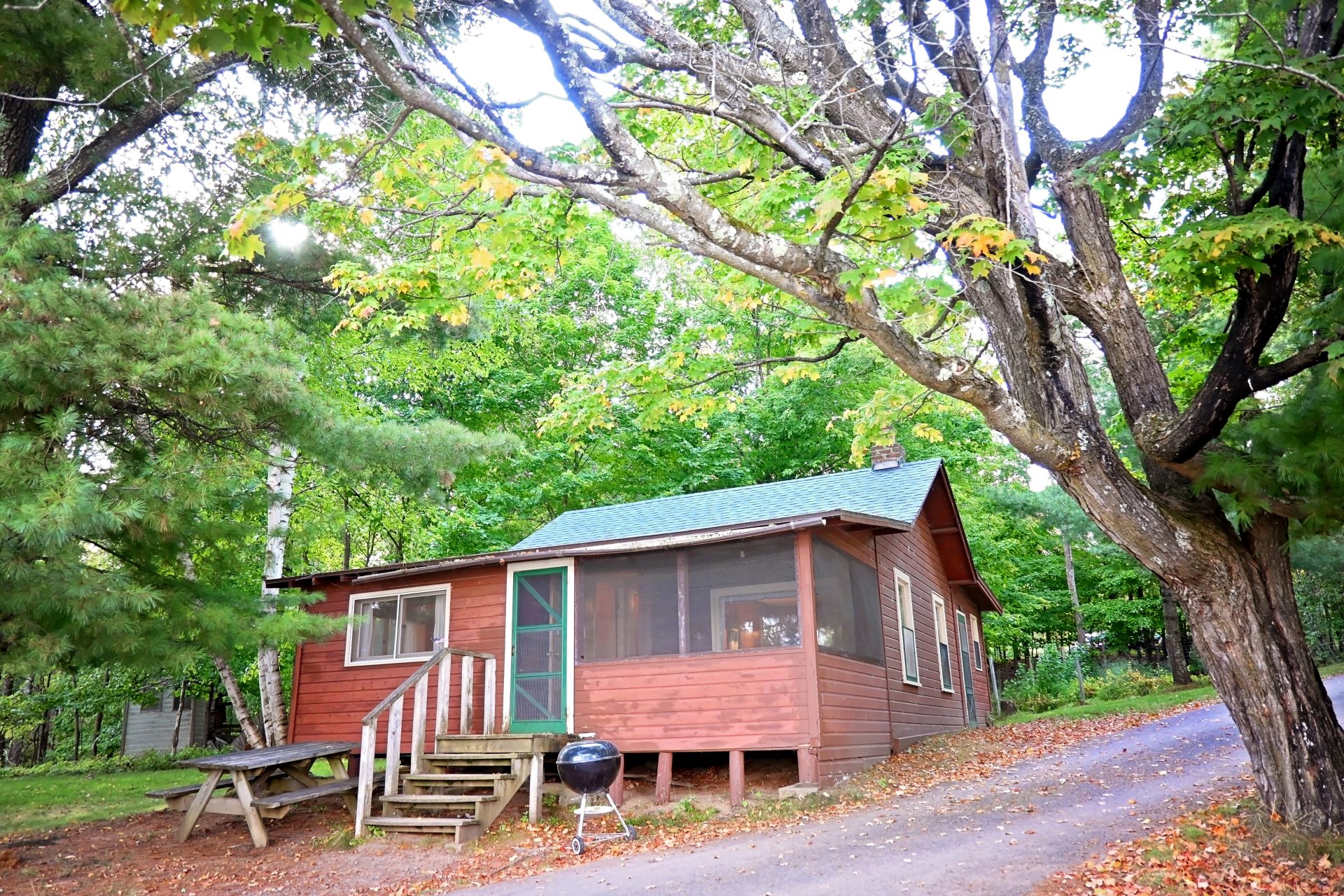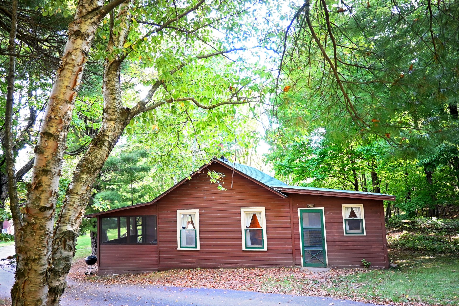 Enjoy a fabulous lake view from your screened-in porch just 75’ from the water with no stairs and level grounds to your private dock with electricity, perfect for the elderly. With up north charm, this adorable cabin is large enough for family gatherings with a roomy kitchen and living room. Pines has a large backyard and is close to our private nature trail, volleyball, fishing off the dock or biking paved roads.