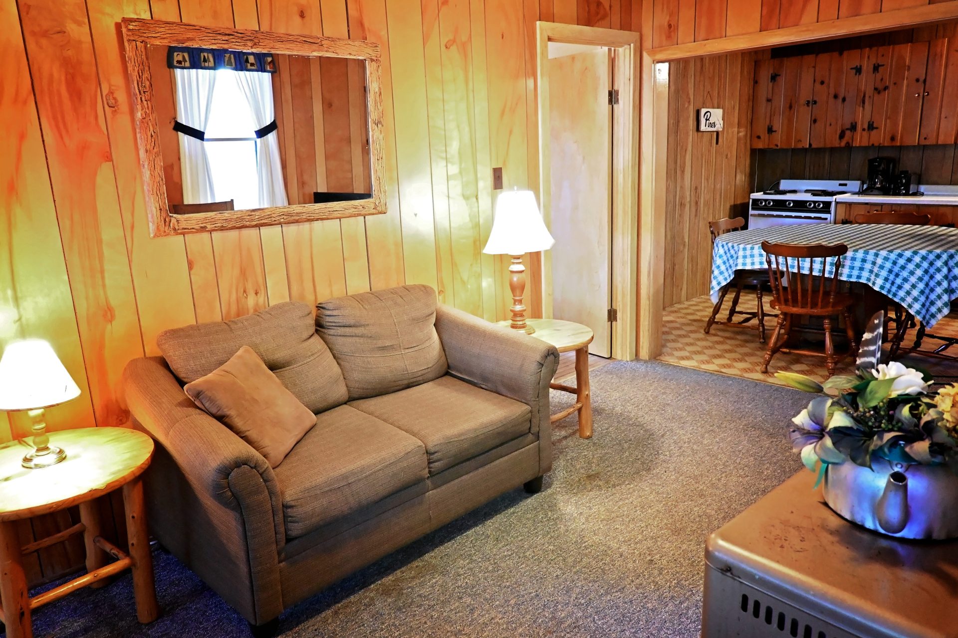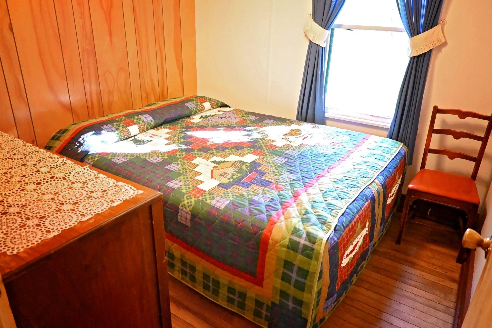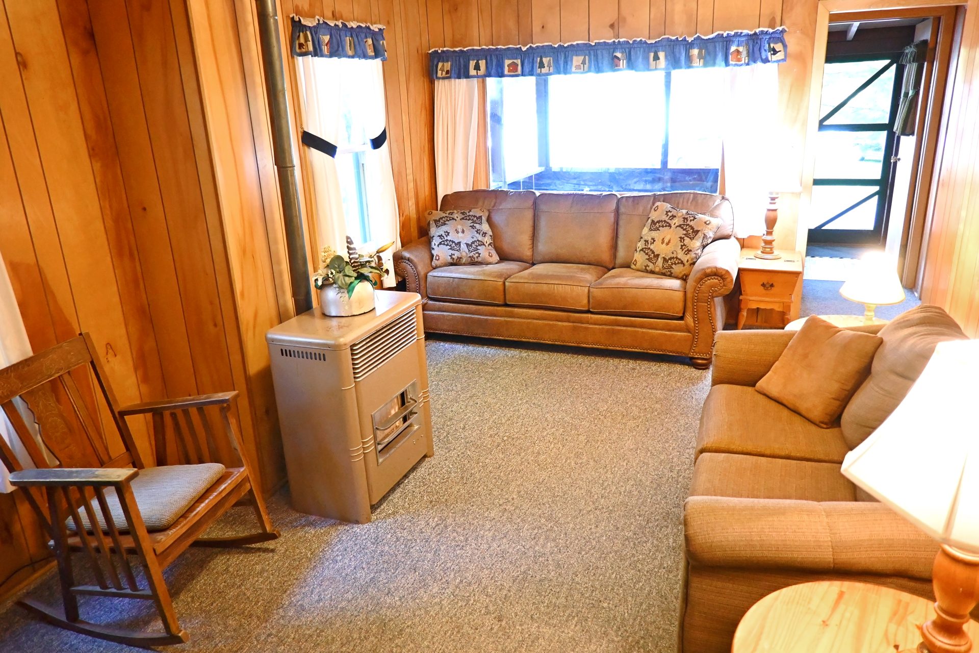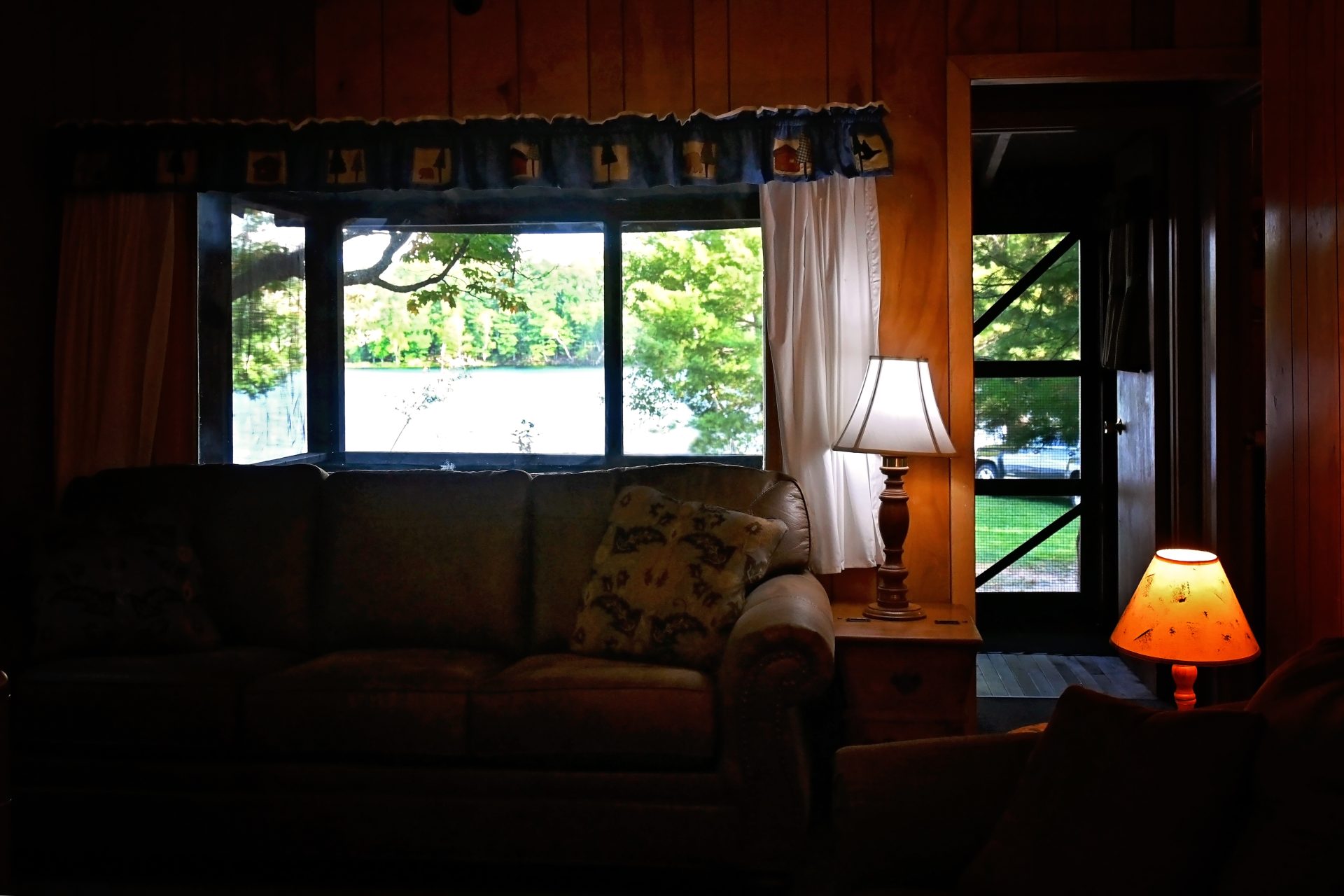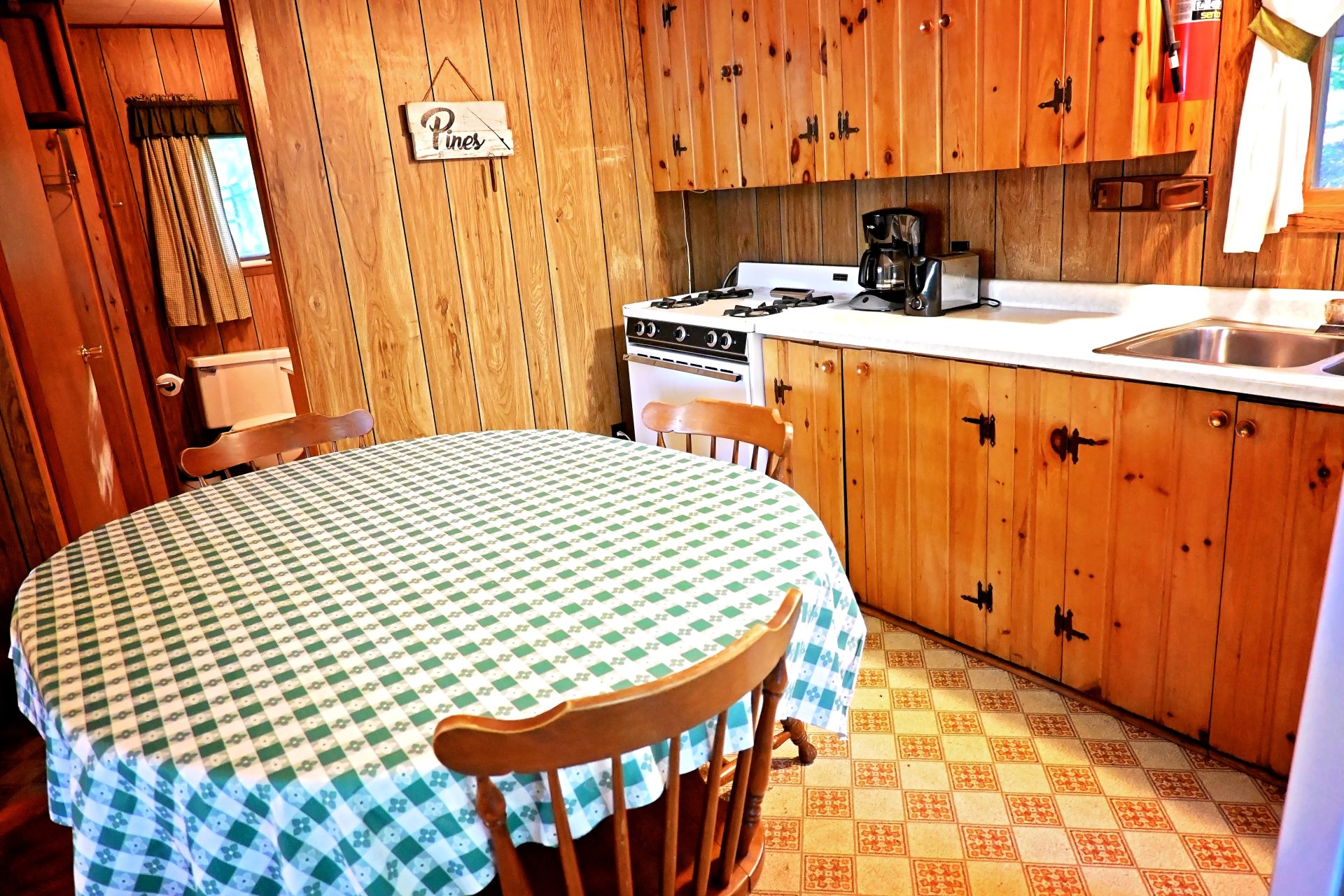 Enjoy a fabulous lake view from your screened-in porch just 75’ from the water with no stairs and level grounds to your private dock with electricity, perfect for the elderly. With up north charm, this adorable cabin is large enough for family gatherings with a roomy kitchen and living room. Pines has a large backyard and is close to our private nature trail, volleyball, fishing off the dock or biking paved roads.
