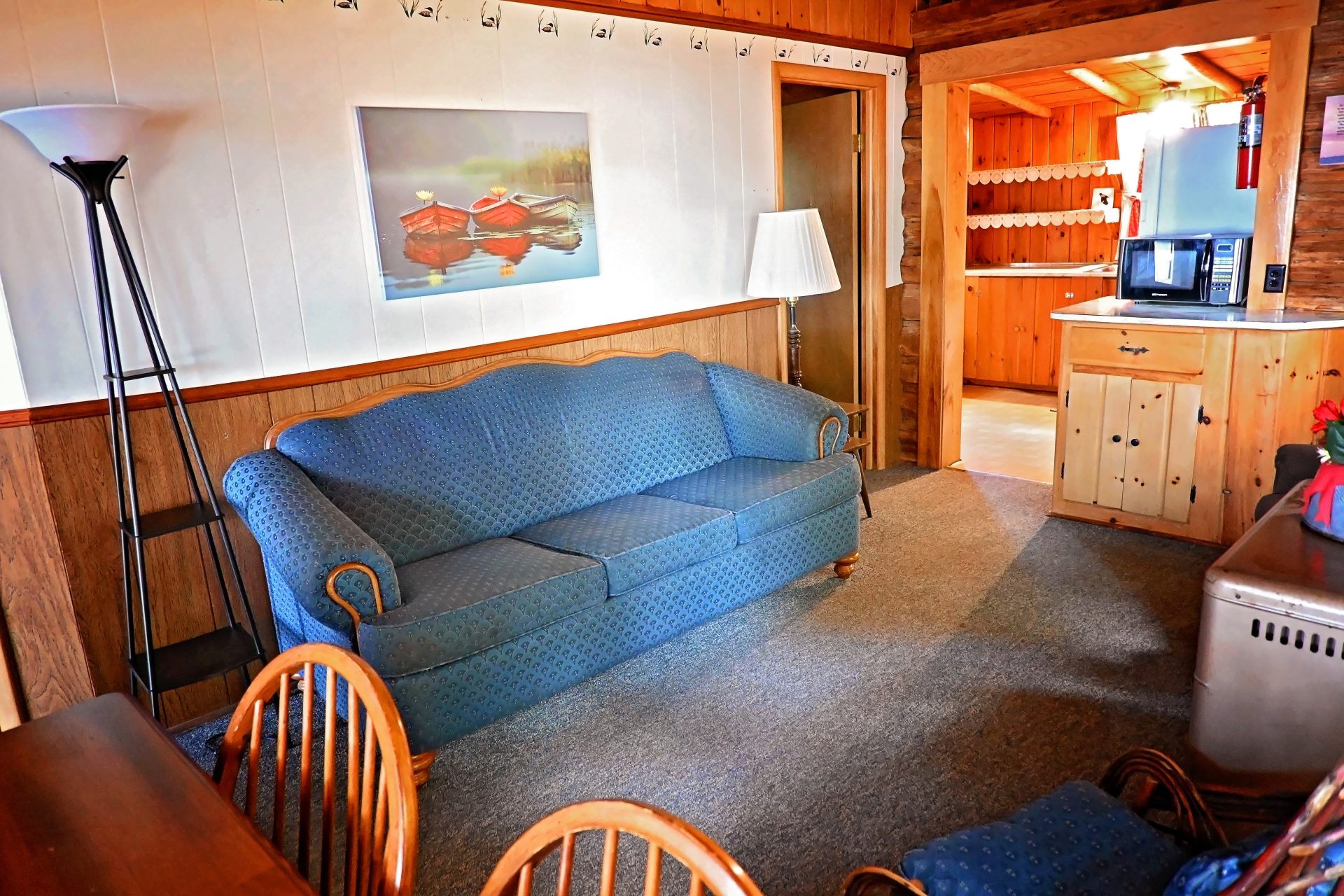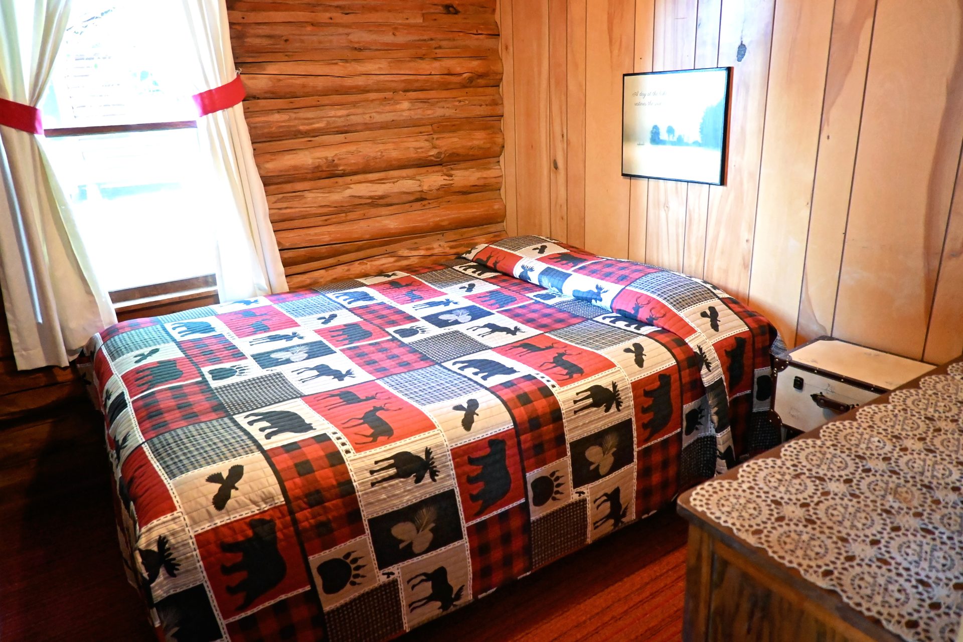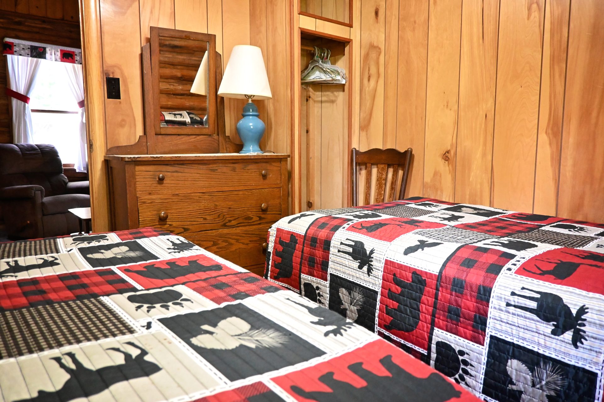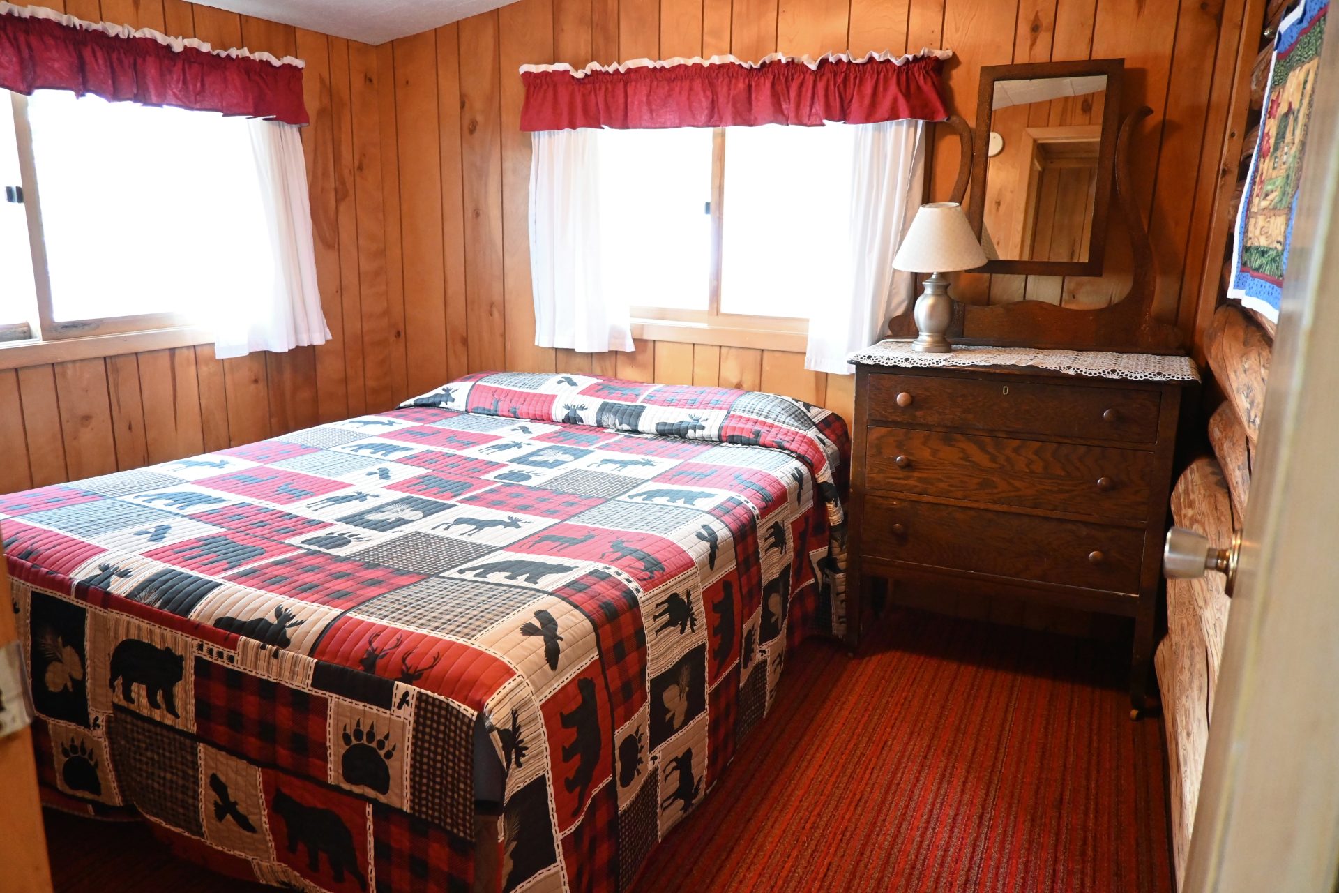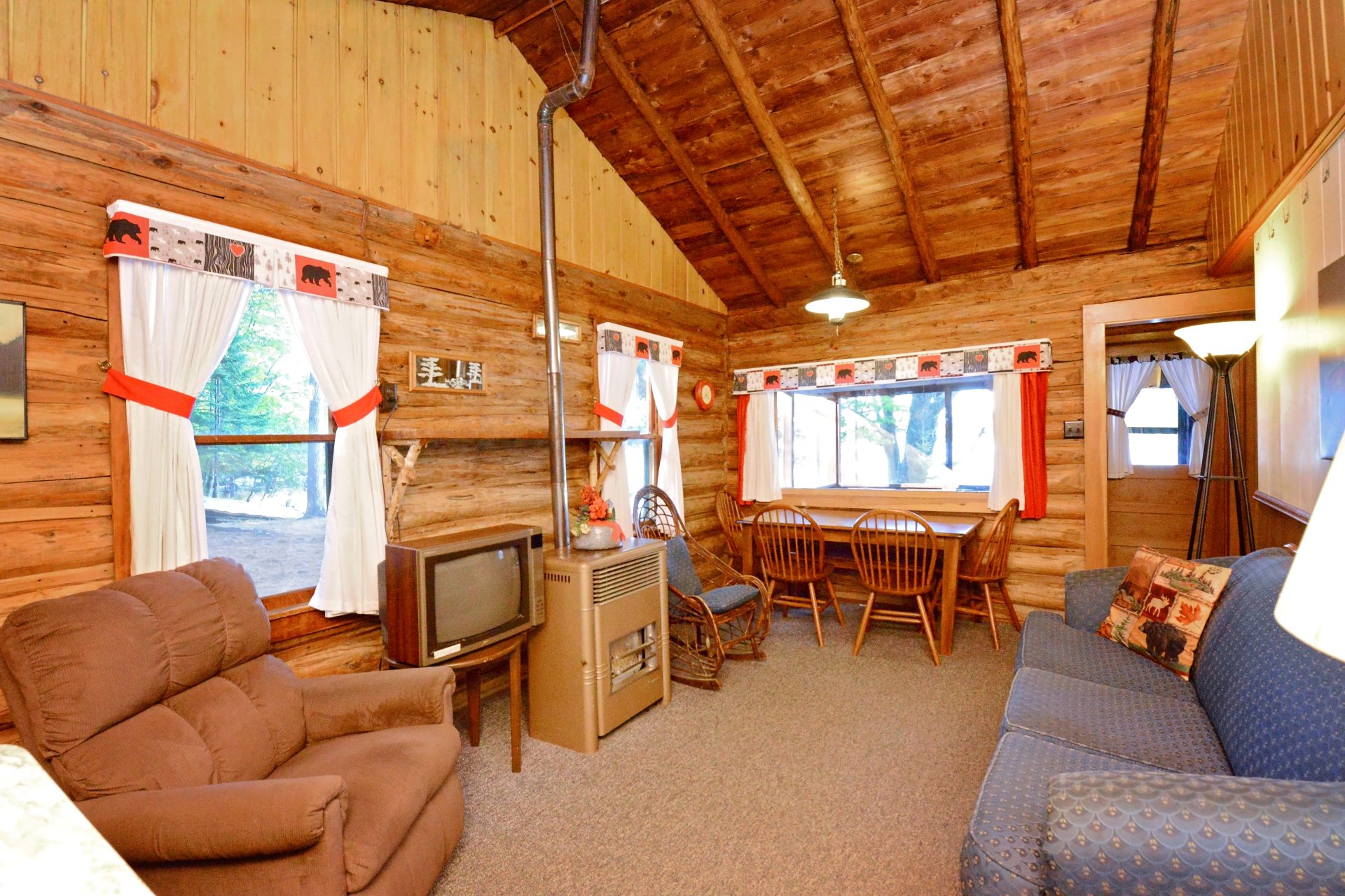 Walk on level ground only 15’ to a private dock or enjoy the breathtaking view from a screened-in porch. This log cabin with cathedral ceiling reminds us of a slow-paced lifestyle at grandma’s vintage cabin in the north woods. Far enough from the lodge to savor the peace and tranquility, yet close to a crackling campfire and playground complex.