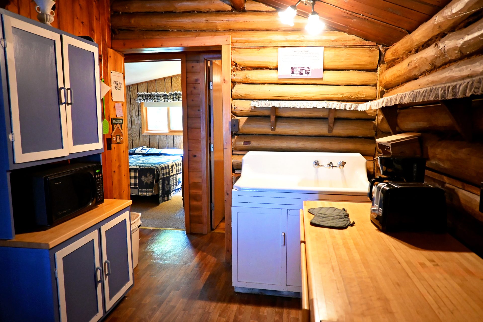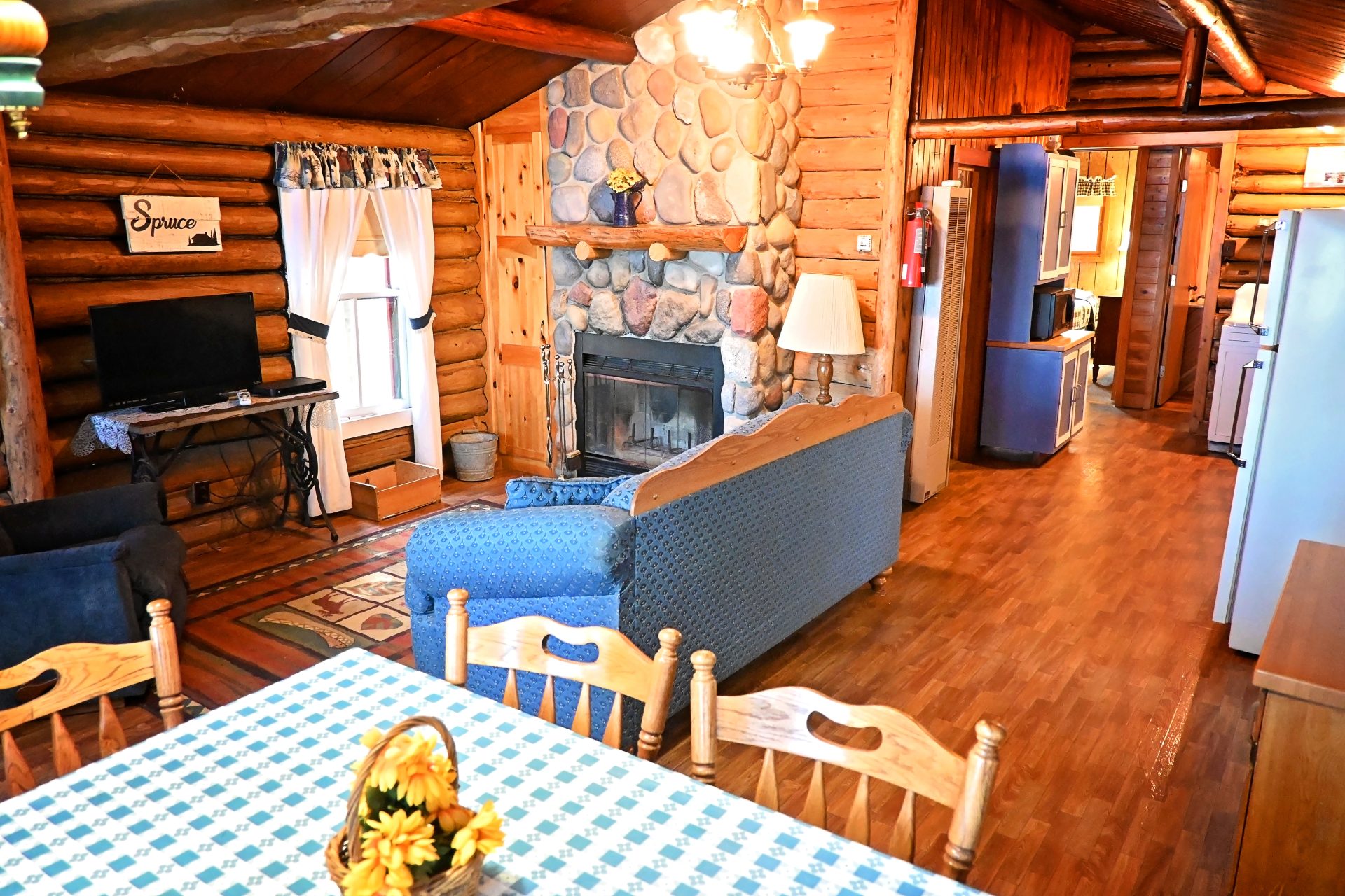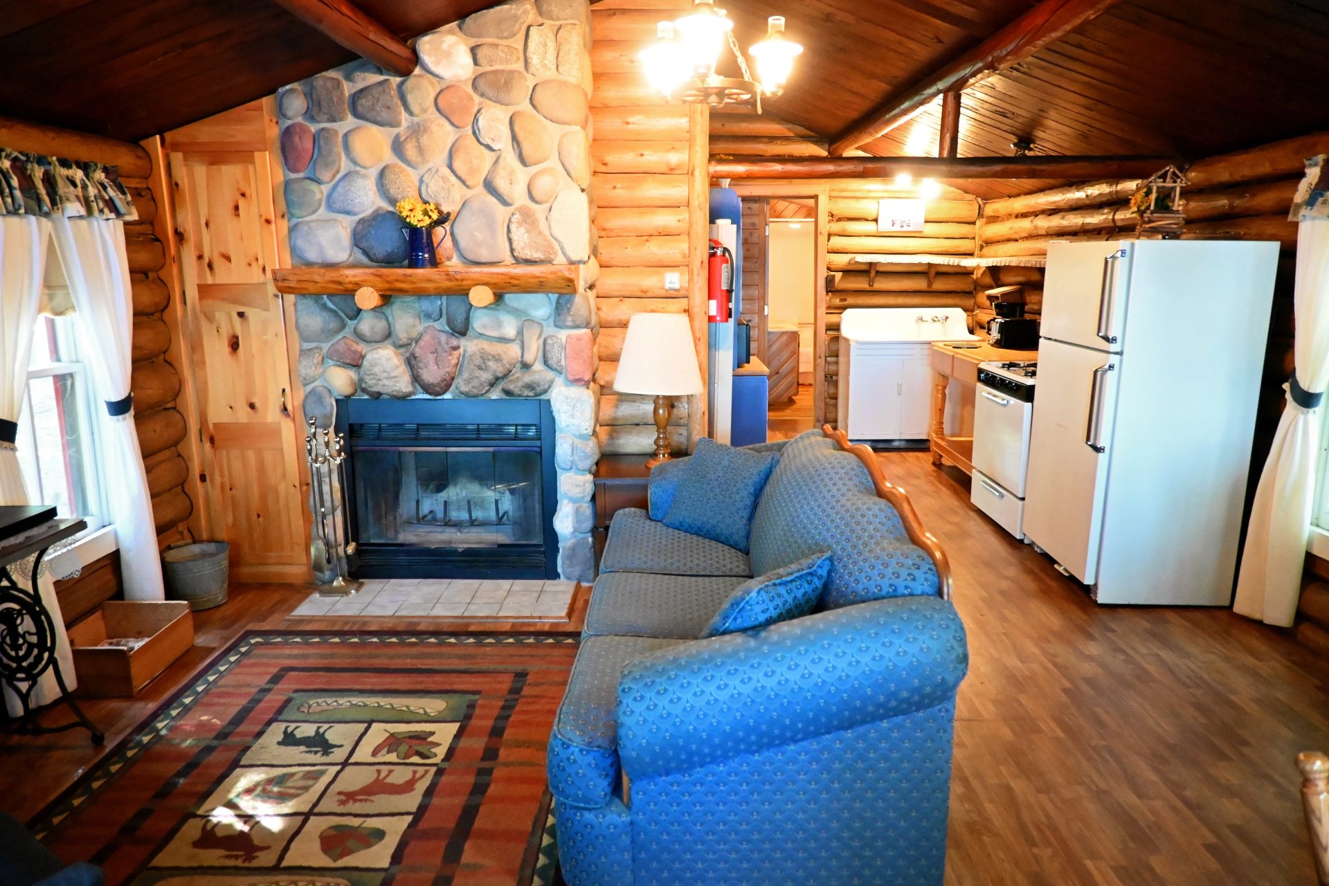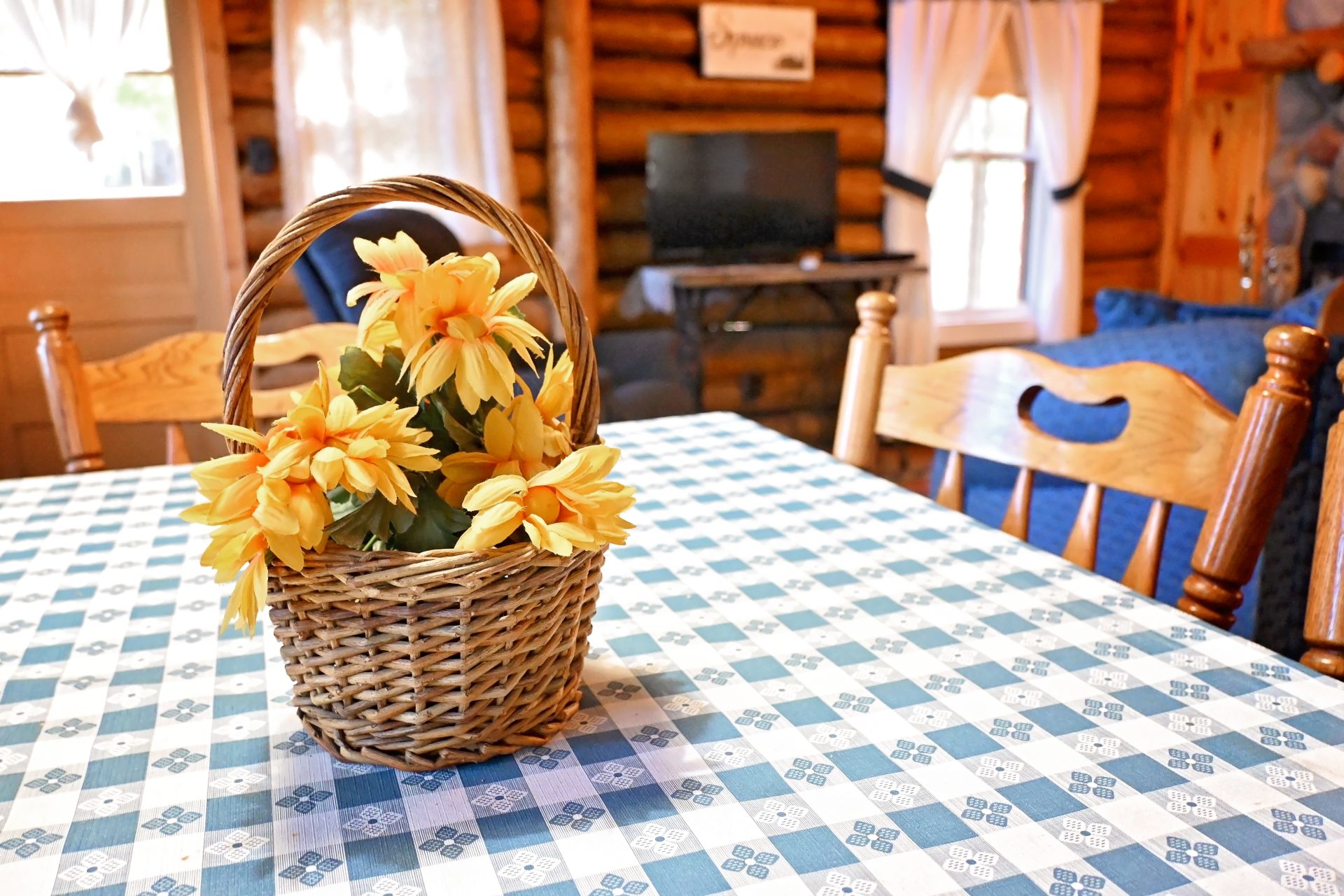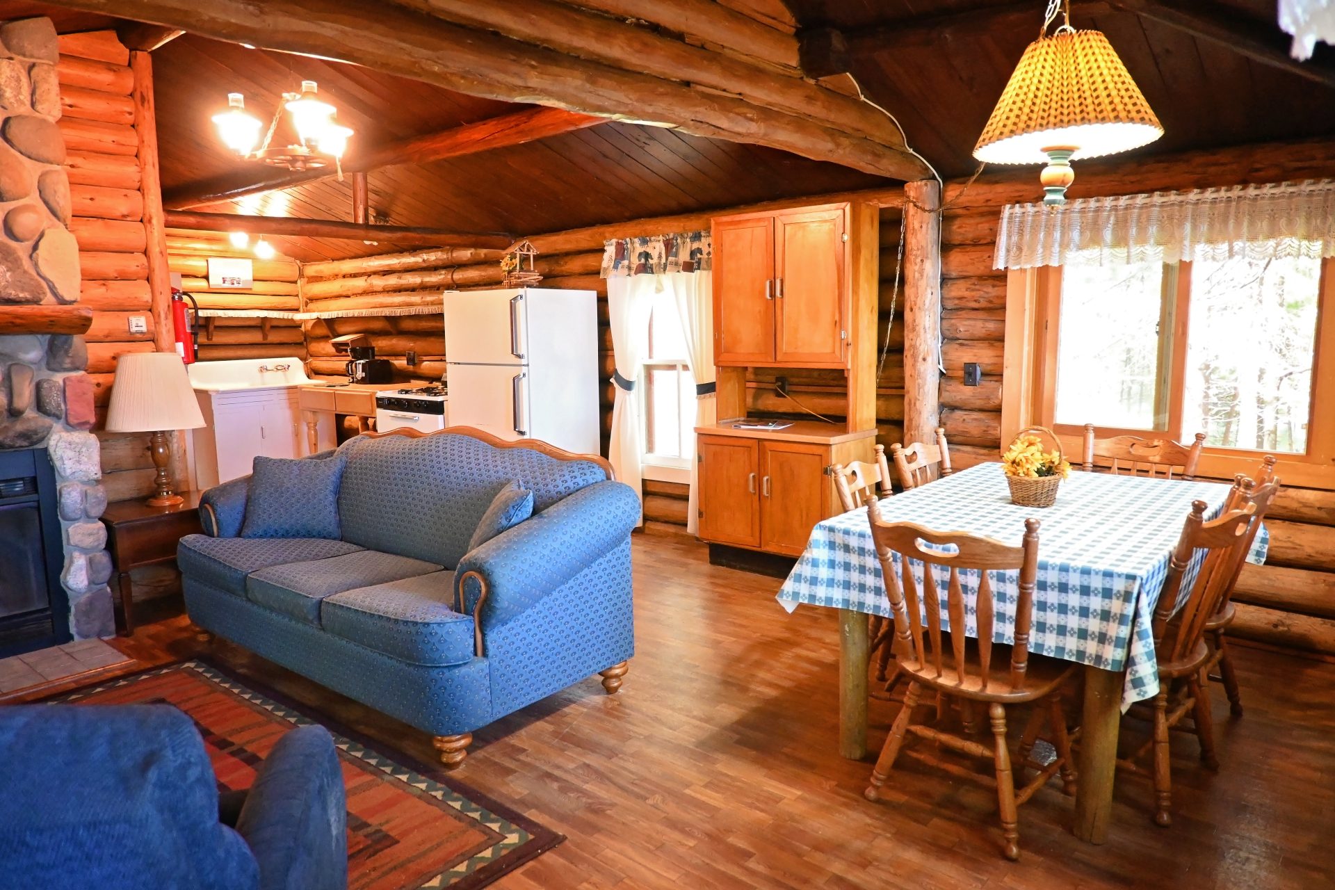 Small enough for a romantic get-a-way, yet large enough with a newly remodeled bath, cathedral ceilings in dining and living room with Satellite TV and large kitchen for family and friends. This romantic and quaint log cabin sets a romantic mood for honeymooners with a stone fire place. With windows along the entire front, savor an excellent lake view from this elevated position. Fifteen steps down to the water, takes you to a sandy beach and safe swimming area with electricity at your private dock. Only ½ mile from the resort, perfect for a secluded get-away.