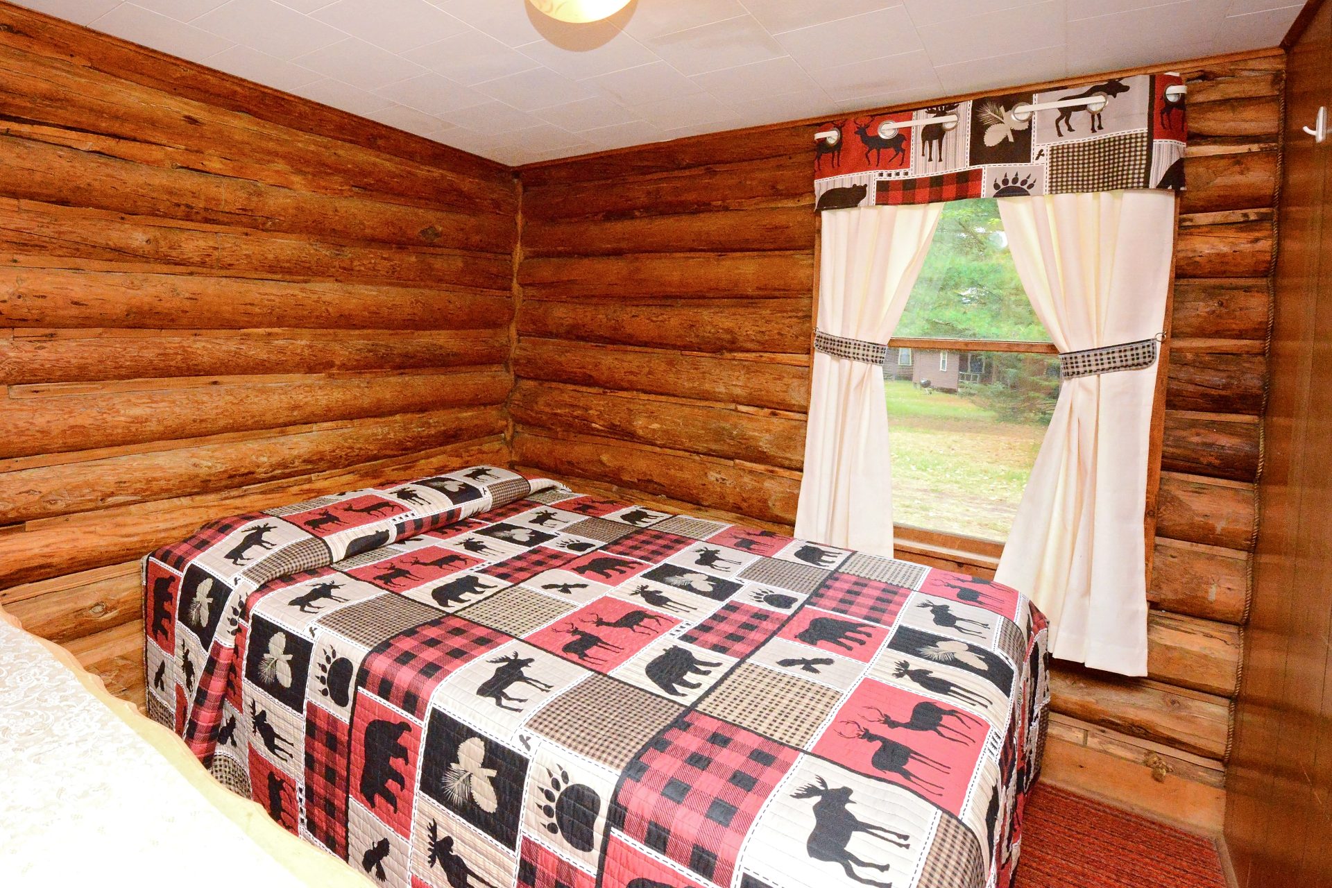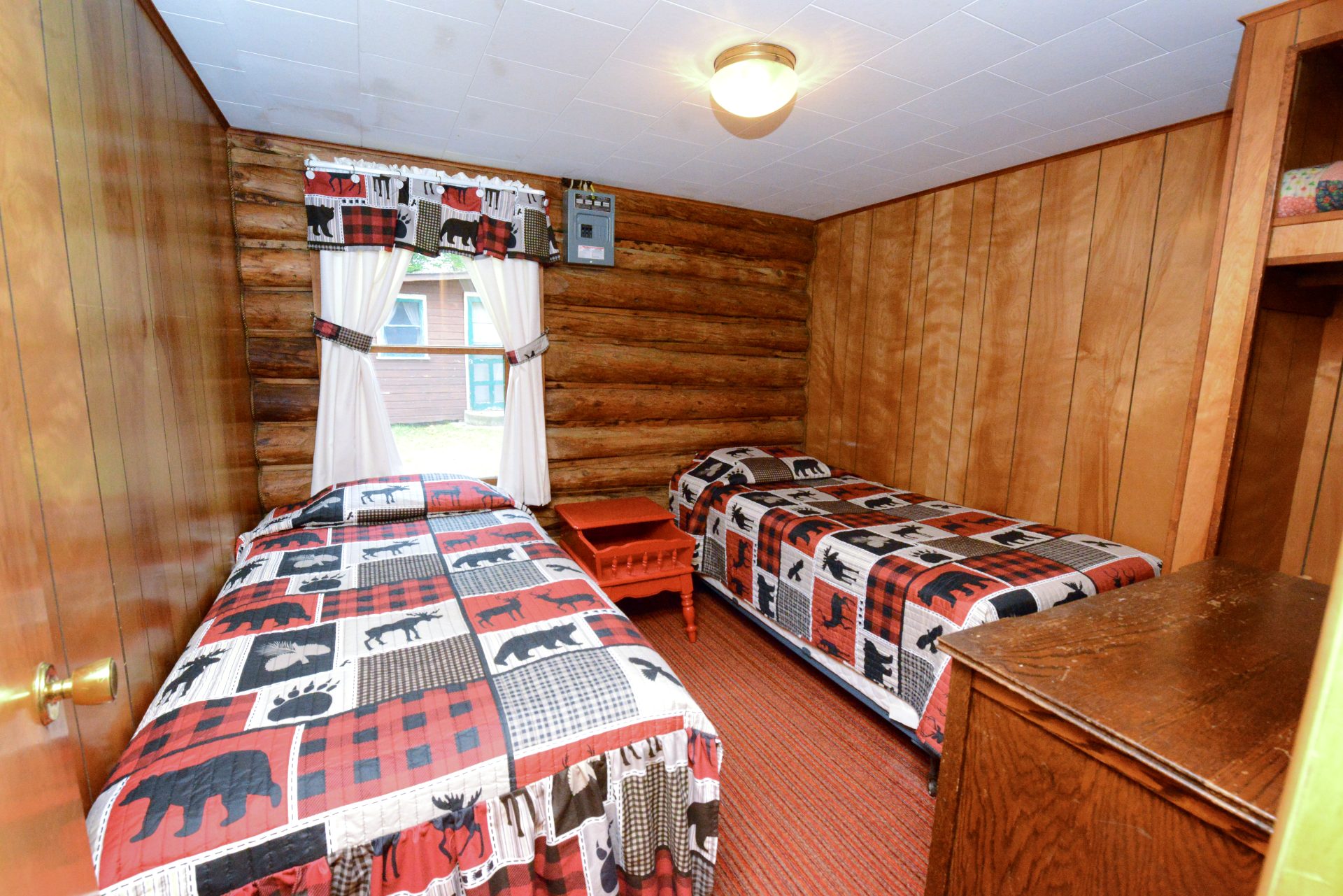 Watch your children slide down the swim slide, splash in the water, play in the sand box or simply soak in the beauty of this lake view only 15’ from your spacious screened-in porch. This prime location close to the lodge, fish house, playground complex, crackling camp fire and horseshoe pit, makes this one of our most coveted cabins. Let the charm of this up north log cabin enhanced with grandma’s antiques, beautiful stone fireplace, cathedral ceilings, large dining and living room area be a part of your vacation memories.