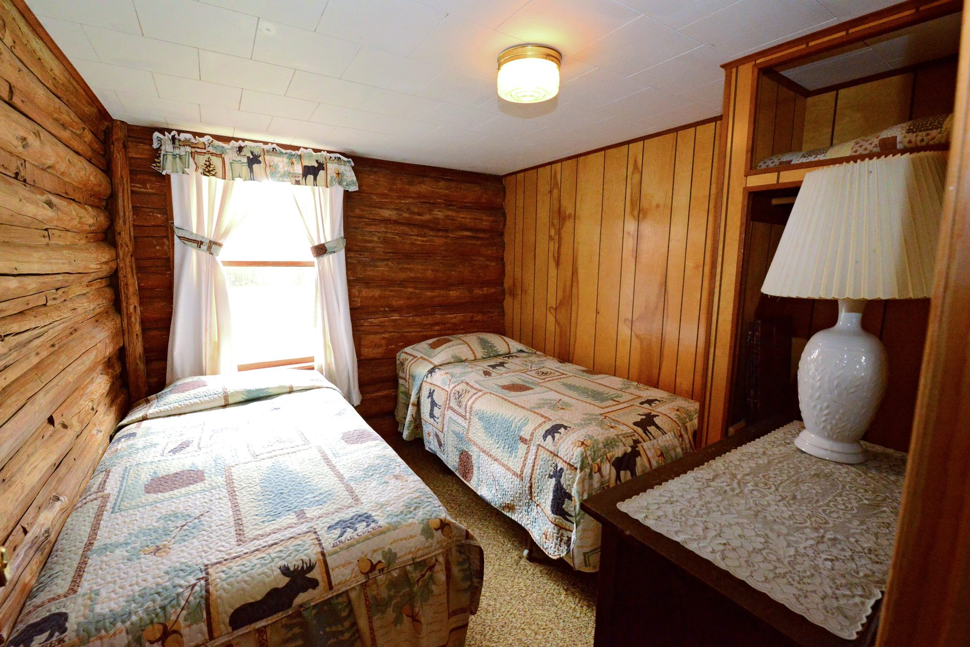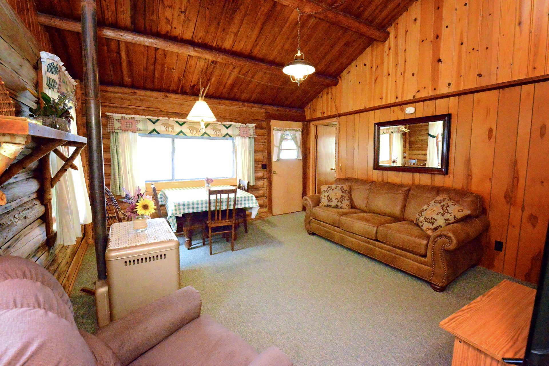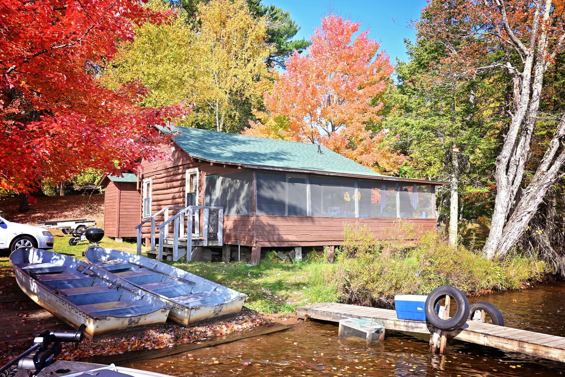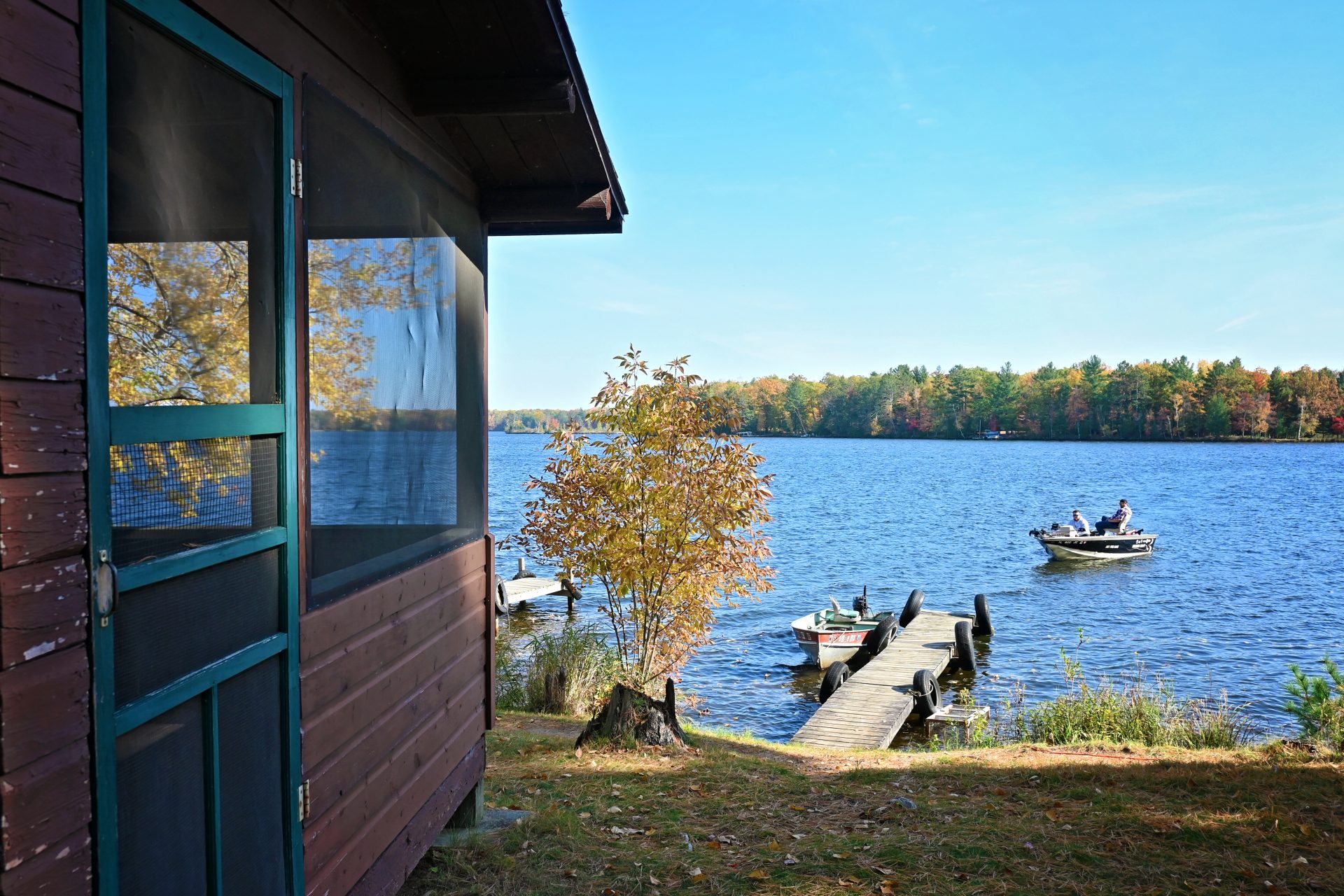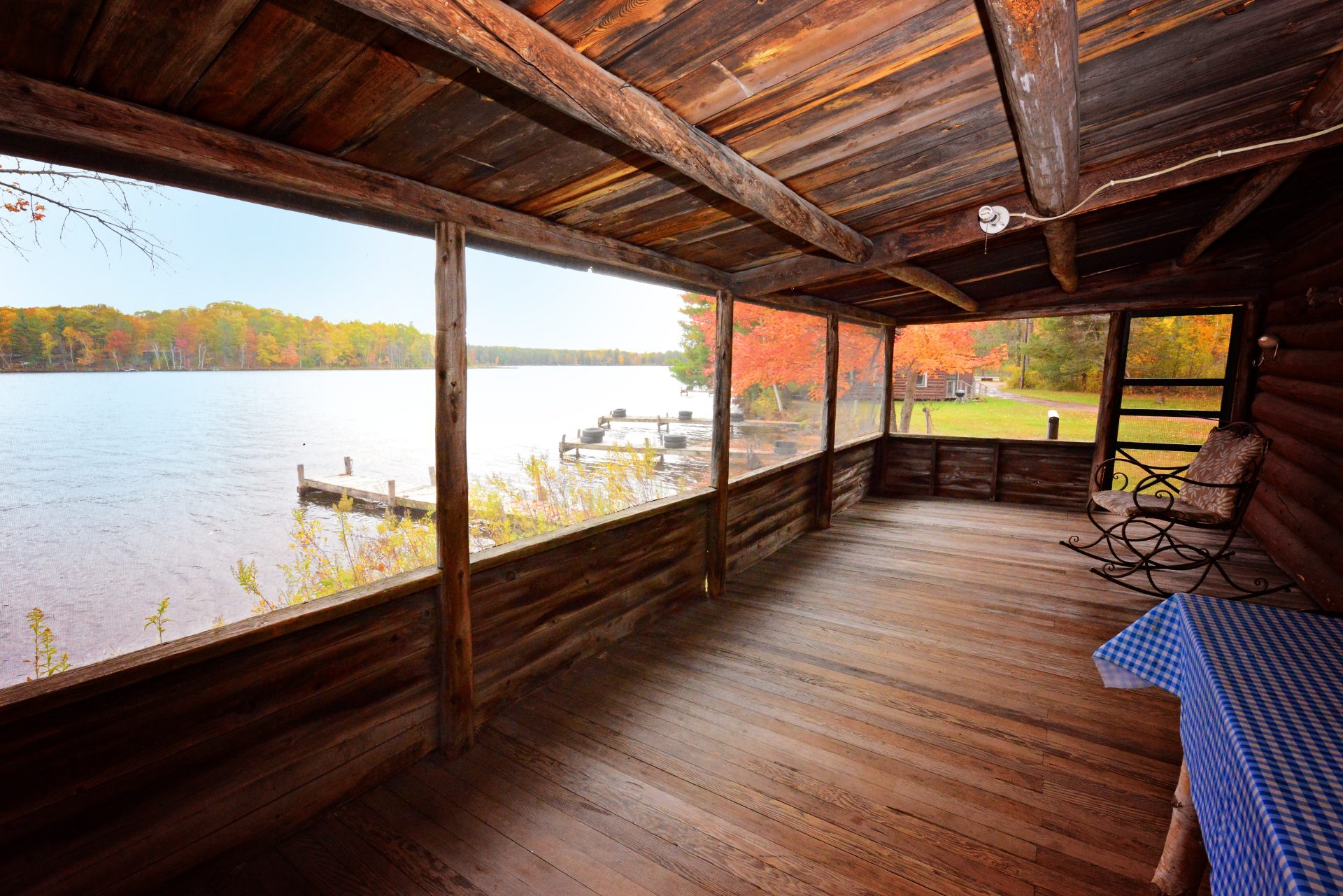 From this exceptional lake view, watch muskies jump, listen to loons call or just savor the evening breeze on your private and spacious screened-in porch with a flat, no stair entry. Just 6’ to waters edge, enjoy your private dock night or day, perfect for the elderly. You’re close enough to interact in the lodge but private enough to unwind and enjoy the quietude of a large yard in this prime location. Cathedral ceiling and this up north décor add a heartwarming and inviting mood to this very popular roomy log cabin.