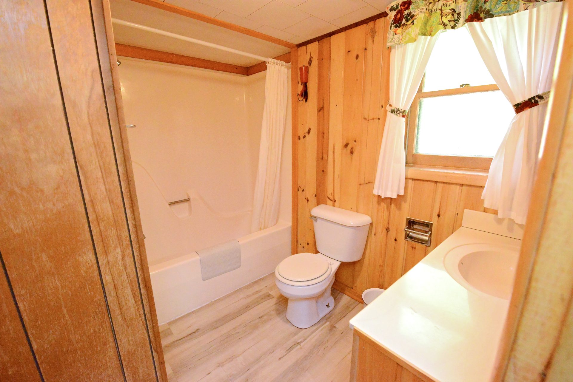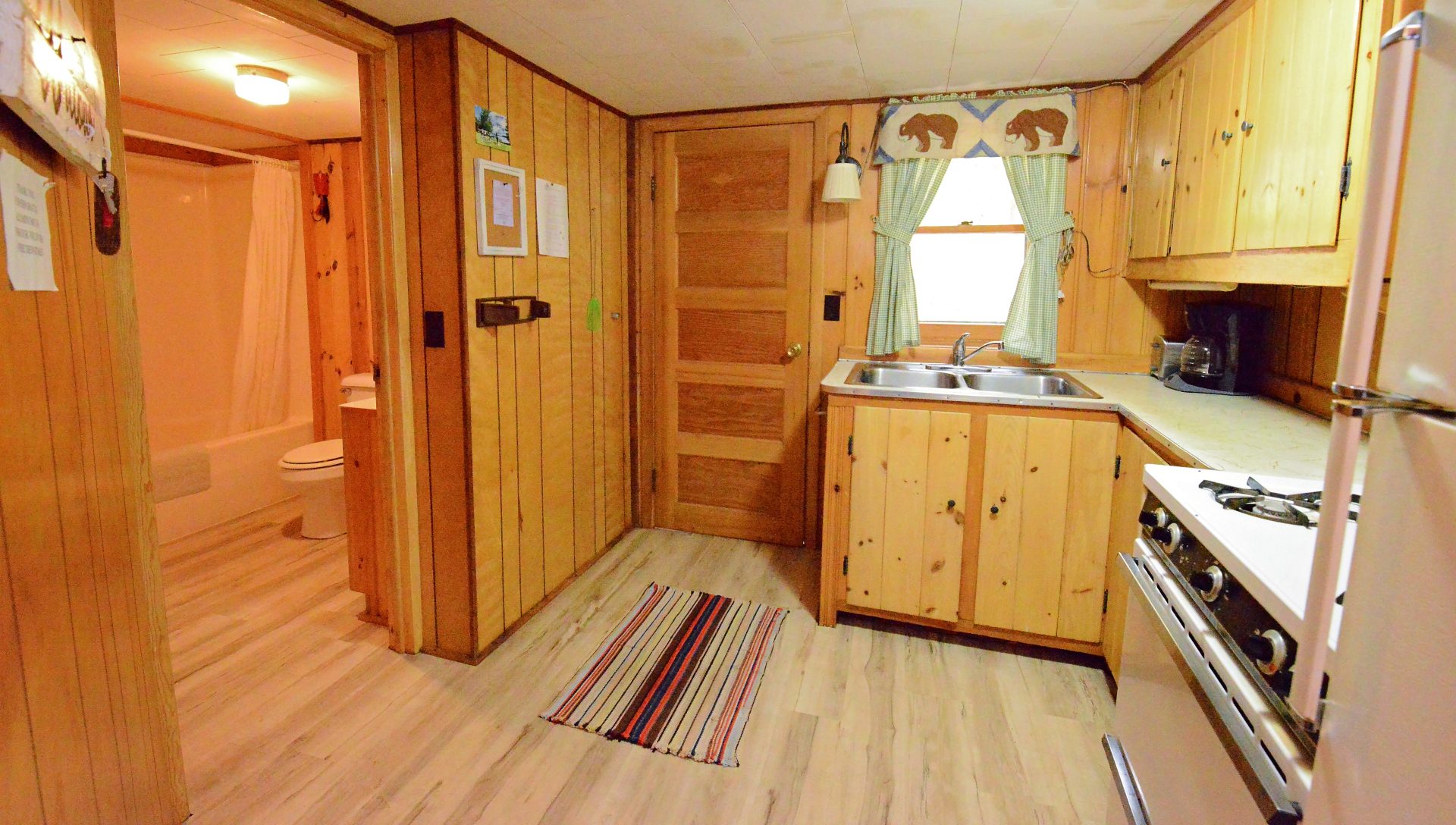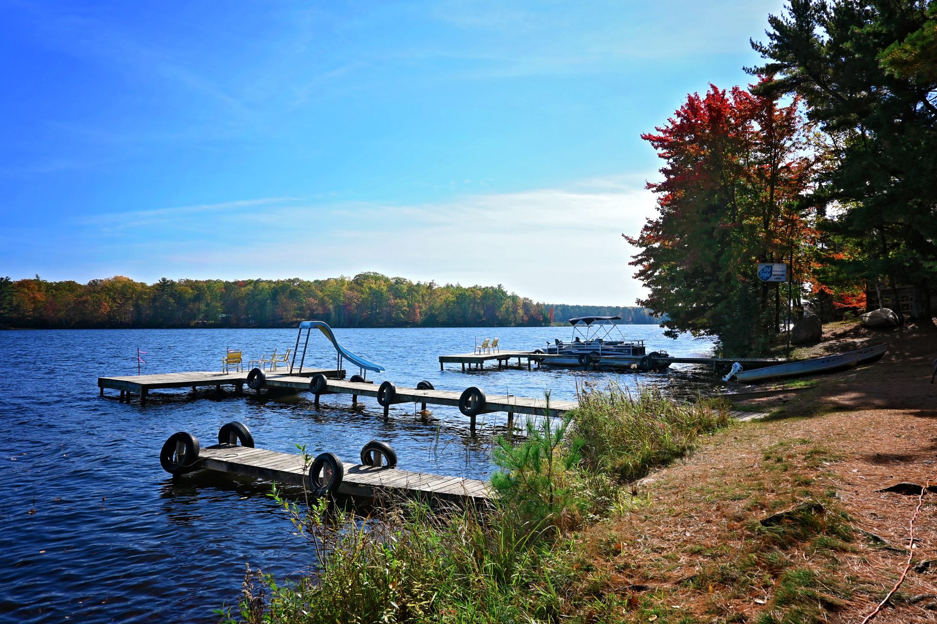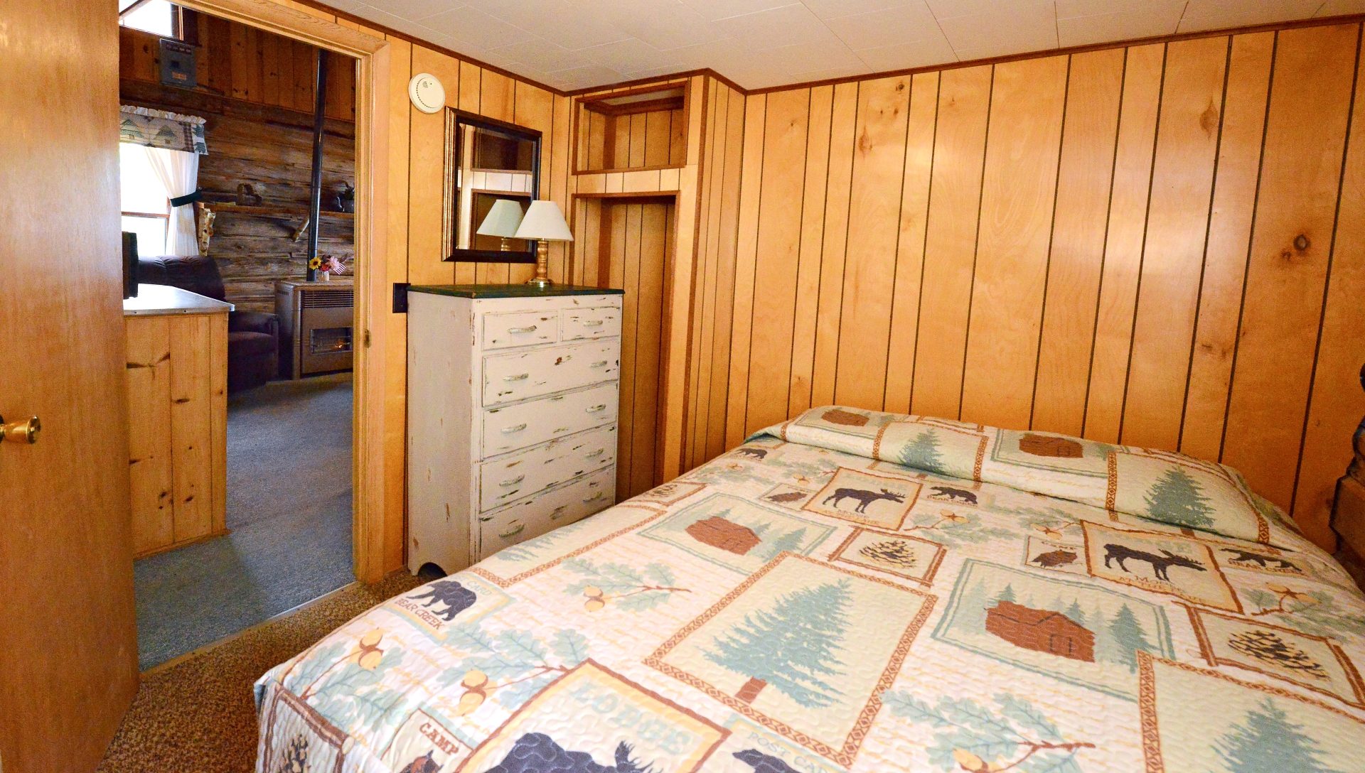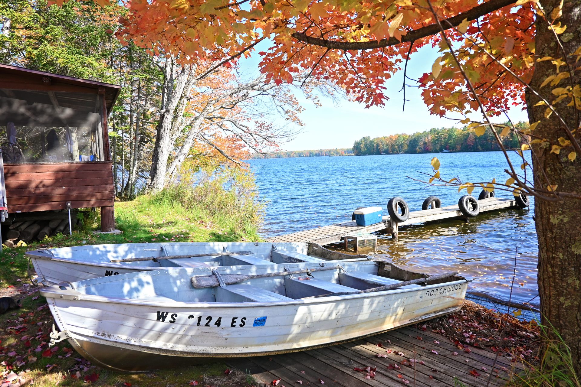 From this exceptional lake view, watch muskies jump, listen to loons call or just savor the evening breeze on your private and spacious screened-in porch with a flat, no stair entry. Just 6’ to waters edge, enjoy your private dock night or day, perfect for the elderly. You’re close enough to interact in the lodge but private enough to unwind and enjoy the quietude of a large yard in this prime location. Cathedral ceiling and this up north décor add a heartwarming and inviting mood to this very popular roomy log cabin.